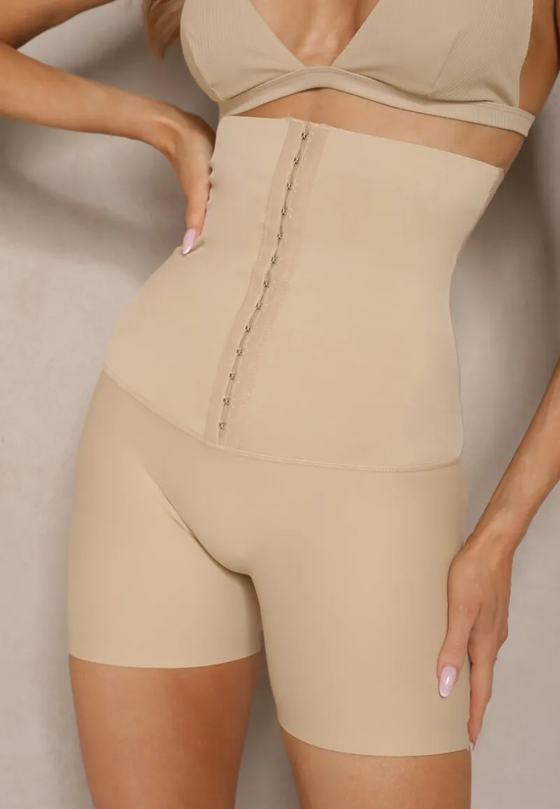 Beżowa Bielizna modelująca Majtki High Waist z Efektem Push Up Lunavera