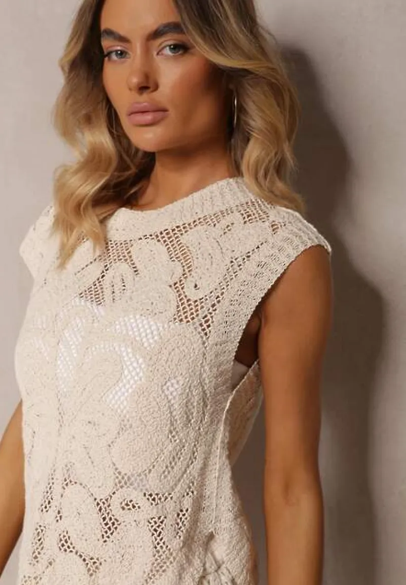 Bluzka Helvitela to kwintesencja letniej elegancji w miejskim stylu. Swobodny fason z subtelnym ażurowym wzorem dodaje lekkości i romantycznego charakteru, a brak rękawów pozwala na wyeksponowanie ramion i zachowanie swobody ruchu. Naturalna bawełna zapewnia komfort noszenia niezależnie od temperatury, zaś głęboki dekolt w kształcie łezki subtelnie akcentuje szyję.