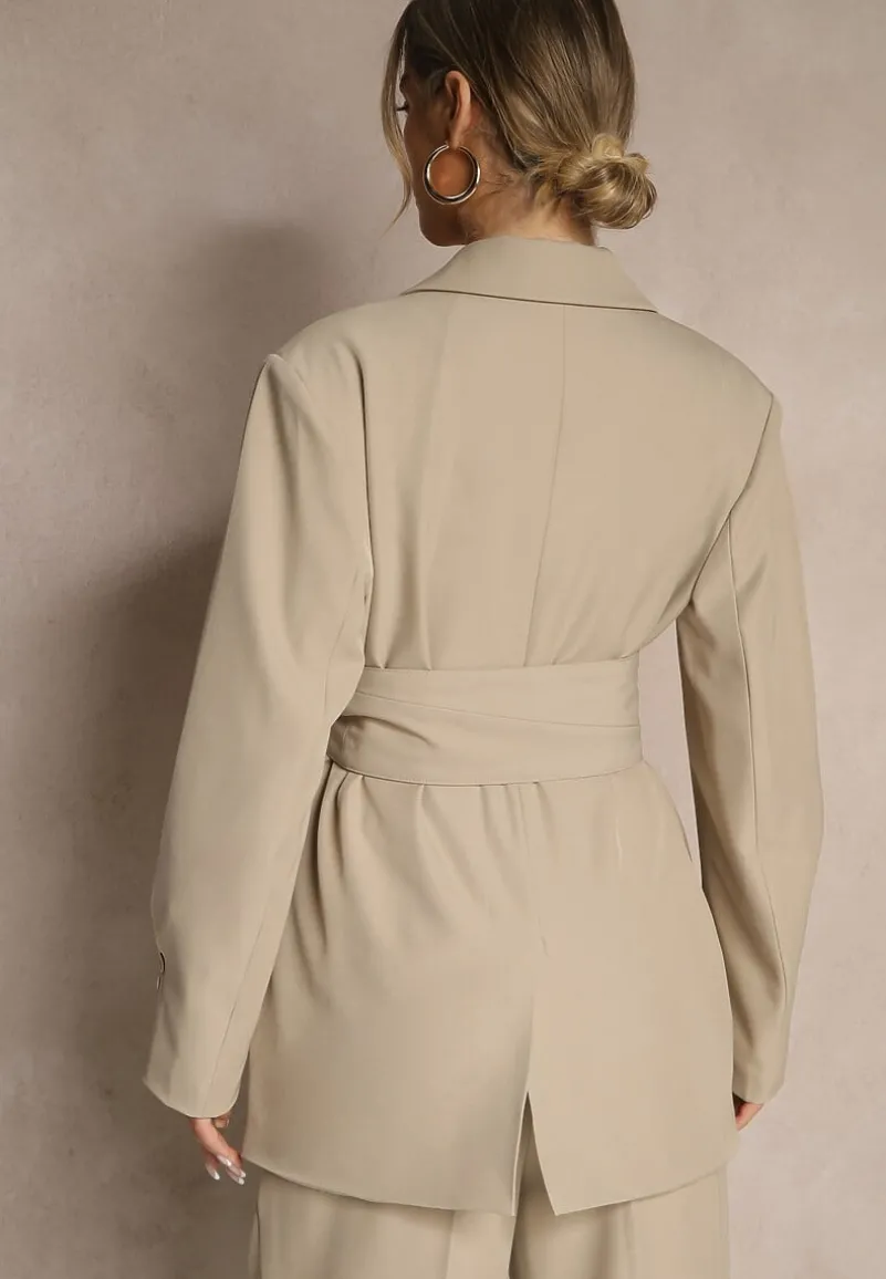 Odkryj wyjątkową dwurzędową marynarkę Lanniva, która idealnie wpisuje się w aktualne trendy. Jej geometryczny, wiązany pasek podkreśla talię, a klasyczny fason dodaje szyku, dzięki czemu marynarka sprawdzi się doskonale zarówno podczas casualowych spotkań, jak i formalnych wyjść. Noś ją z garniturowymi spodniami i eleganckimi szpilkami do biura, a na co dzień postaw na jeansy i sneakersy — możliwości są nieograniczone! Marynarka posiada wszyte w ramionach poduszki, dodające sylwetce charakteru, oraz stylową imitację kieszeni na wysokości klatki piersiowej. Musisz ją mieć!
