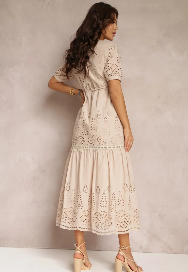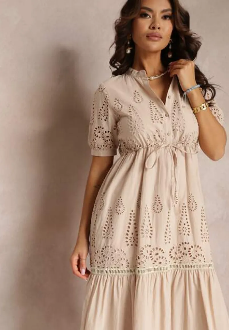 Stwórz idealną letnią stylizację boho, która sprawi, że zaprezentujesz się zjawiskowo! Wykonana z haftowanej tkaniny, posiada podszewkę. Ściągana w pasie troczkiem. Zapinana na guziki do linii talii.