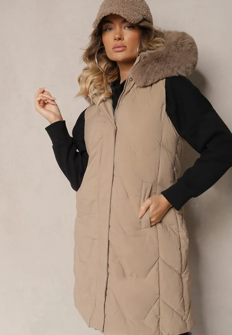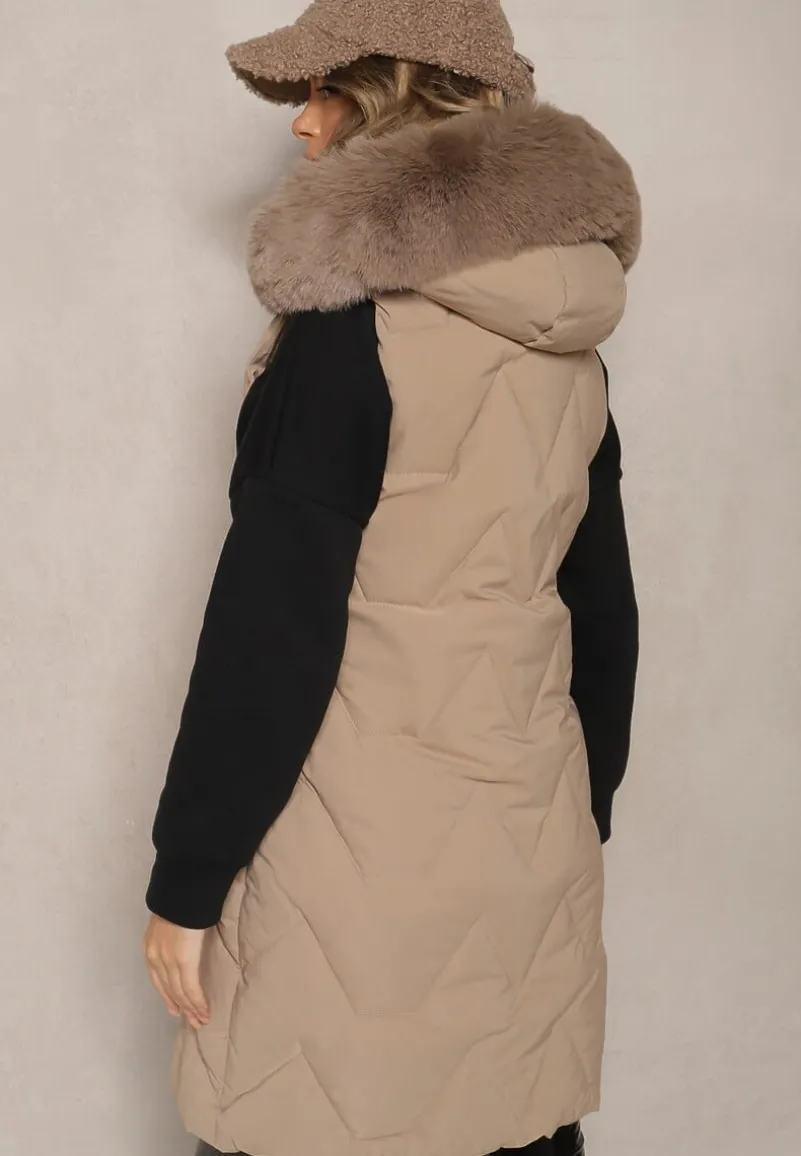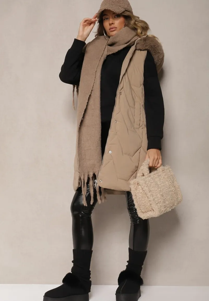 Kamizelka Pikowana z Kapturem i Odczepianym Futerkiem Innaleia to must-have w szafie każdej trendsetterki. Swój niepowtarzalny charakter zawdzięcza przemyślnemu pikowaniu, które w subtelny sposób podkreśla sylwetkę oraz odczepianemu futerku, dodającemu odrobinę luksusu. Ta kamizelka to idealny wybór na przejściowy sezon – doskonale sprawdzi się na chłodniejsze dni wiosny czy jesieni. Noś ją na codzień z dżinsami i swetrem lub stylizuj na bardziej formalne wyjścia z eleganckimi spodniami i botkami. W takim wydaniu będziesz wyglądać nie tylko stylowo, ale też czuć się komfortowo przez cały dzień.