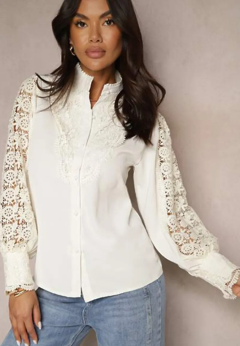 Koronkowa Koszula ze Stójką Sariviel na guziki to świetny wybór dla kobiet kochających subtelny szyk i elegancję. Stójka dodaje wyrafinowanego charakteru. Kształt dekoltu jest klasyczny, niewielki, dzięki czemu koszula sprawdzi się zarówno podczas biznesowych spotkań, jak i romantycznych kolacji. Koronkowy wzór to kwintesencja kobiecości. Połącz ją z prostymi spodniami na co dzień lub spódnicą ołówkową na wieczorne wyjście, by podkreślić swój unikalny styl.