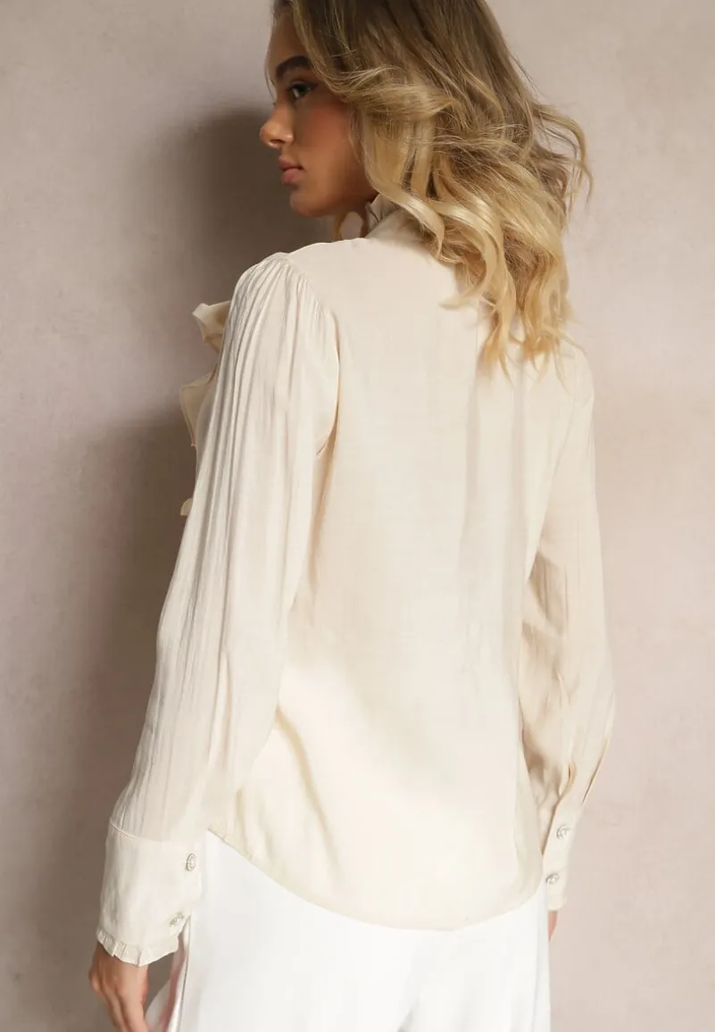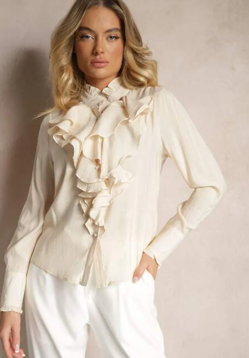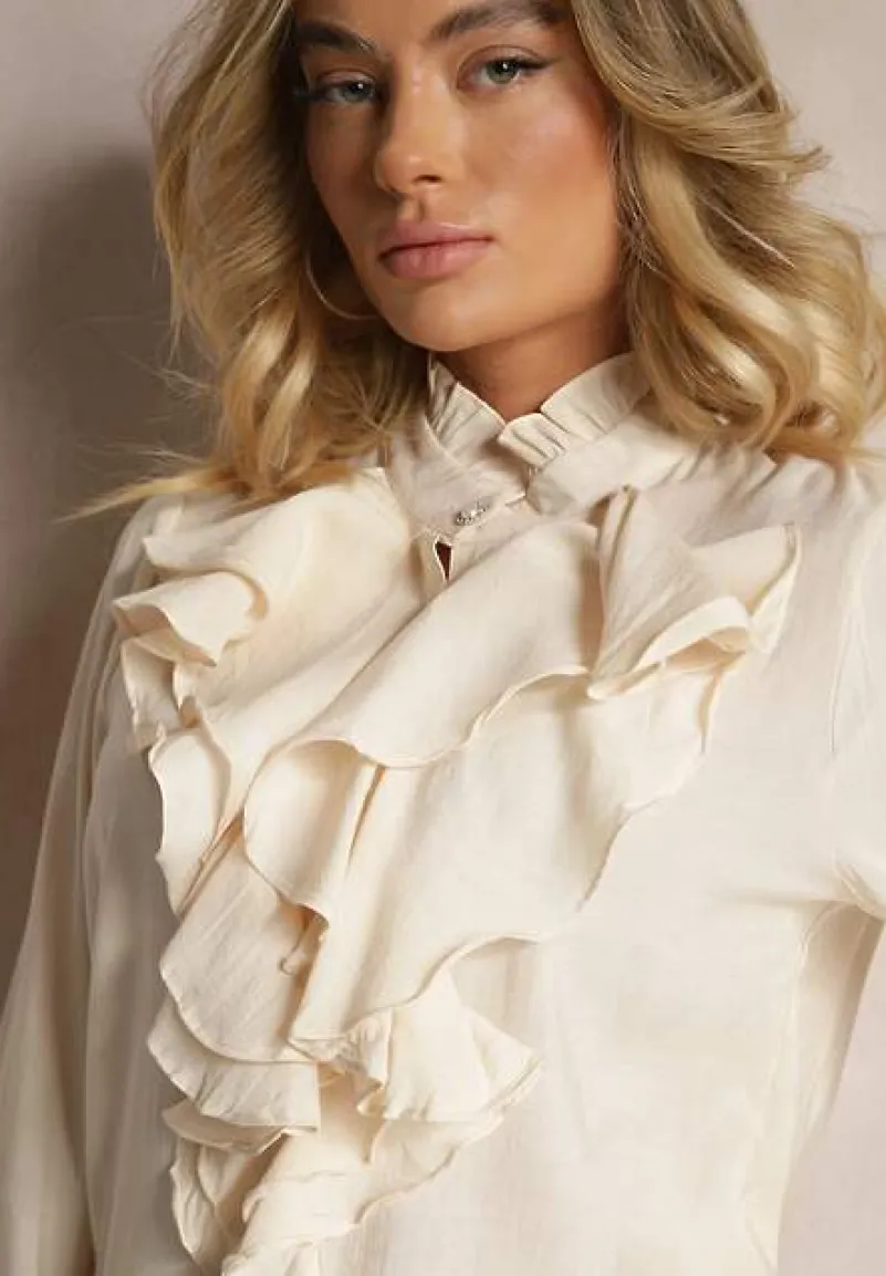 Koszula z Wiskozy z Falbanami i Biżuteryjnymi Guzikami Tasvila to prawdziwa perełka w garderobie każdej modnej kobiety. Dzięki delikatnej linii z eleganckim kołnierzykiem doda klasy każdej stylizacji zarówno na co dzień, jak i podczas bardziej formalnych okazji. Dekolt w kształcie V subtelnie eksponuje szyję, nadając bluzce wysublimowanego charakteru. Wzbogacona falbanami i biżuteryjnymi guzikami, stanowi idealne dopełnienie stylizacji z ołówkową spódnicą i eleganckimi szpilkami na wieczorne wyjście lub z ulubionymi jeansami i mokasynami na popołudniowy spacer z przyjaciółkami.