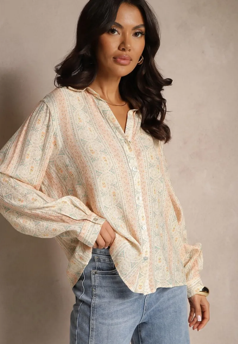 Koszula Aredina zdobiona drobnym kwiatowym wzorem to must-have dla każdej fashionistki, która ceni sobie połączenie klasyki z nutą romantyzmu. Luźny fason oraz długie rękawy z mankietami doskonale sprawdzą się zarówno w codziennych stylizacjach, jak i na bardziej formalne okazje. Elegancki kołnierzyk i subtelny dekolt w kształcie litery V dodają szyku, a delikatny materiał z wiskozy dodaje lekkości. Połącz koszulę z dopasowanymi spodniami i mokasynami na co dzień lub z ołówkową spódnicą i szpilkami, by olśnić na wieczornym spotkaniu. To strzał w dziesiątkę na każdą okazję!