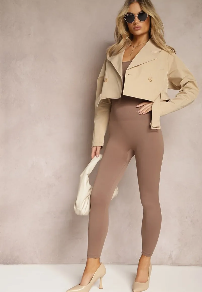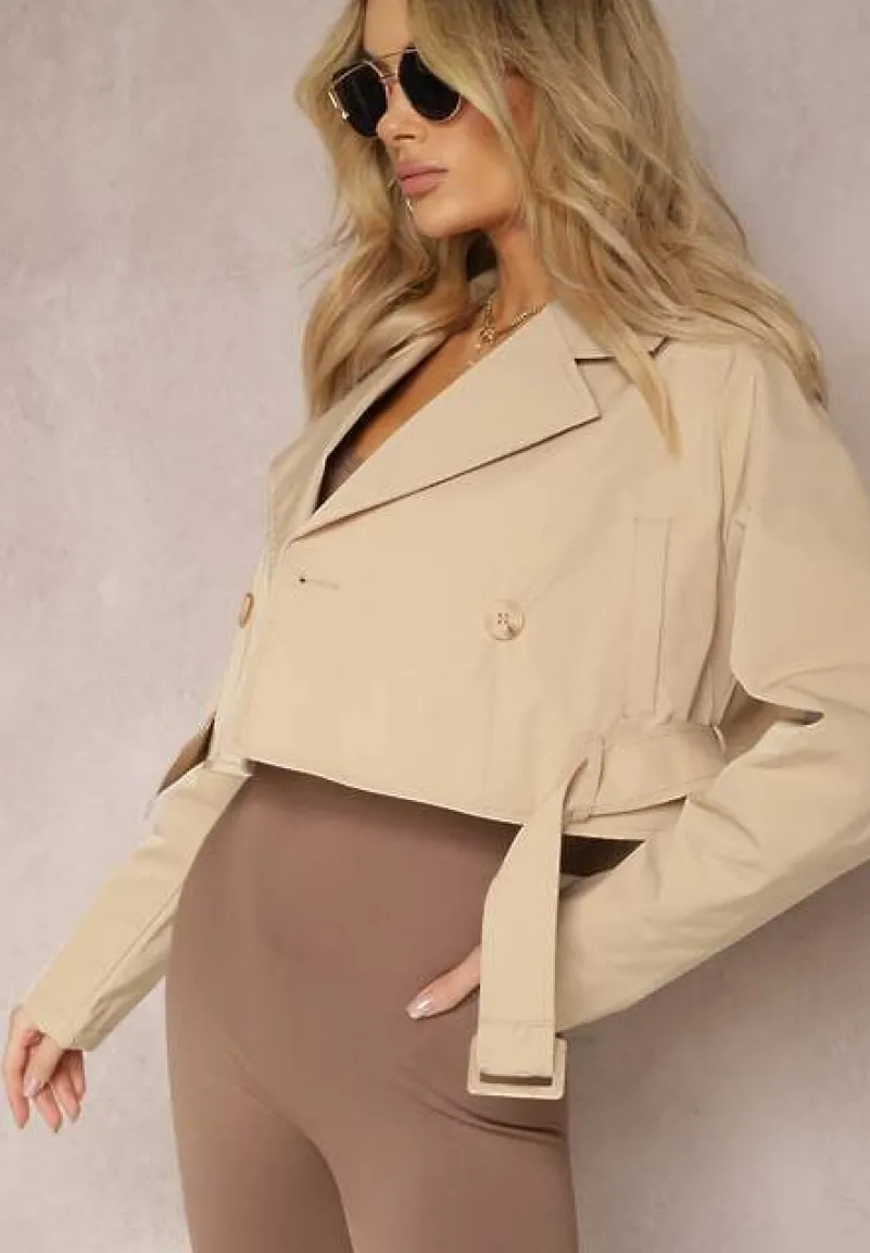 Krótka kurtka dwurzędowa uszyta na wzór trencza z klapami i paskiem z klamerką. To świetna alternatywa dla klasycznego płaszcza na wiosnę!