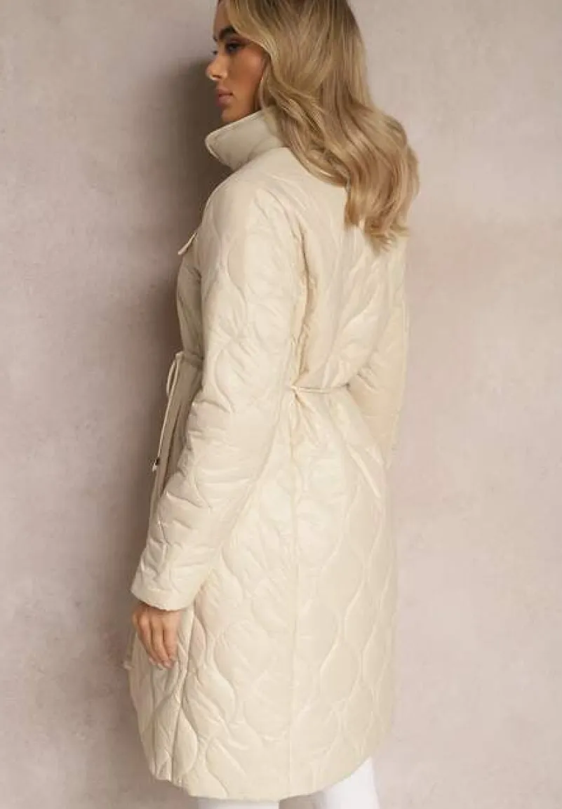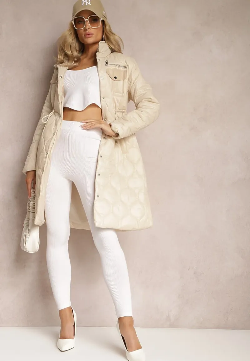 Kurtka Villa z pikowanego, lekko ocieplanego materiału. Posiada wysoki kołnierz i wsuwane kieszenie. Zamiast klasycznego zamka błyskawicznego wszyte napy. W pasie dodatkowo ściągana sznurkiem. Na przodzie, nad klatką piersiową ozdobne imitacje kieszeni. Pikowana kurtka Villa świetnie sprawdzi się w jesiennych i wiosennych stylizacjach.