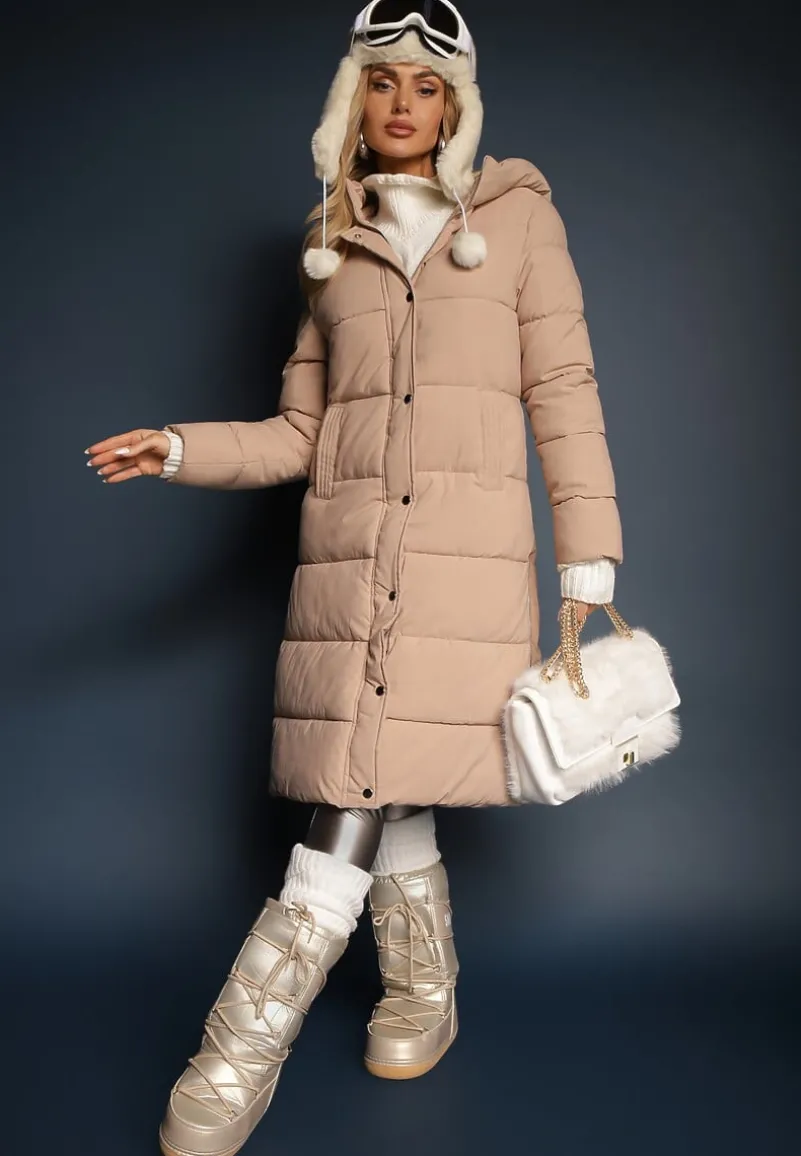 Pikowana Długa Kurtka z Kapturem i Napami Tisima to idealny wybór na chłodniejsze dni. Charakteryzuje się prostą linią oraz taliowanym fasonem, który podkreśli Twoją sylwetkę, a długie rękawy zapewnią komfort noszenia. Idealnie sprawdzi się na co dzień, jak i w mniej formalnych sytuacjach, dostarczając komfort i funkcjonalność dzięki kapturowi, wsuwanym kieszeniom i grubemu ociepleniu. Charakteru dodają jej ozdobne boczne suwaki. Zestaw ją z jeansami i sneakersami na co dzień, lub dla eleganckiego wyjścia – z wąskimi spodniami i botkami na obcasie. Musisz ją mieć!