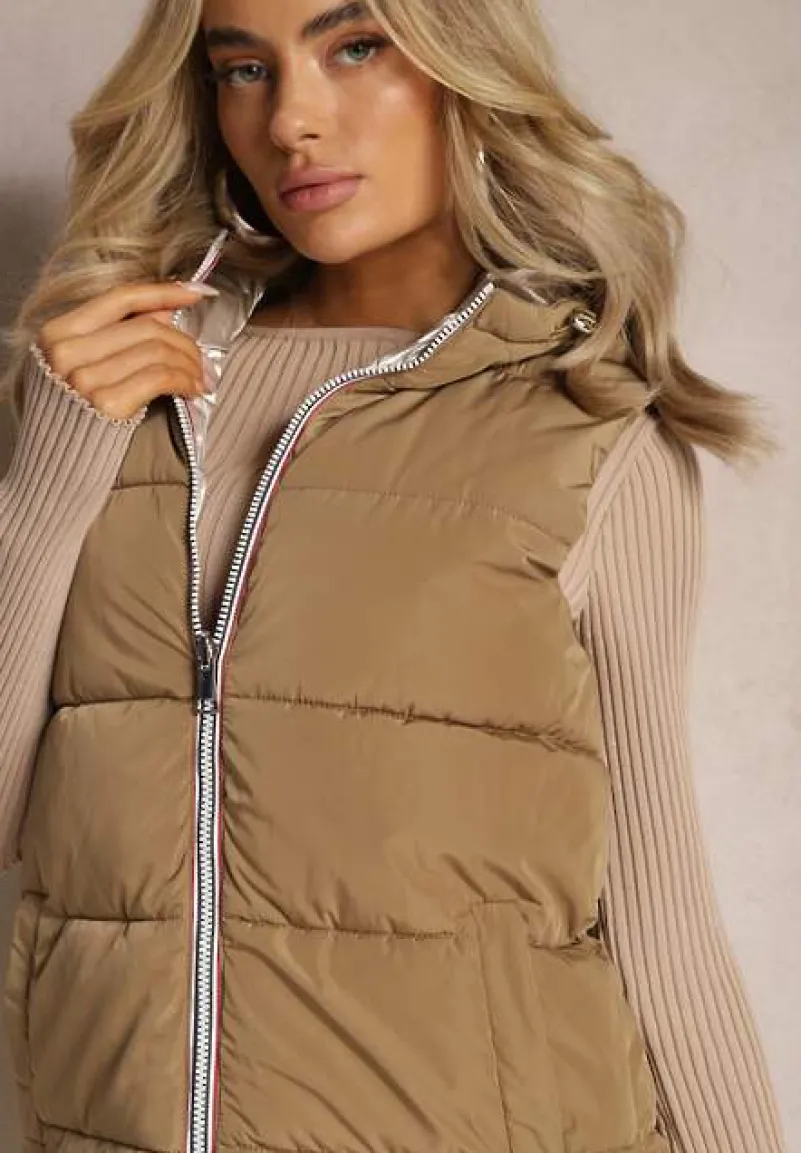 Dwustronny, pikowany bezrękawnik Erinea z kapturem. Zapinany na zamek błyskawiczny. Posiada wsuwane kieszenie na wysokości bioder. Będzie idealnym dodatkiem na przejściowe pory roku.
