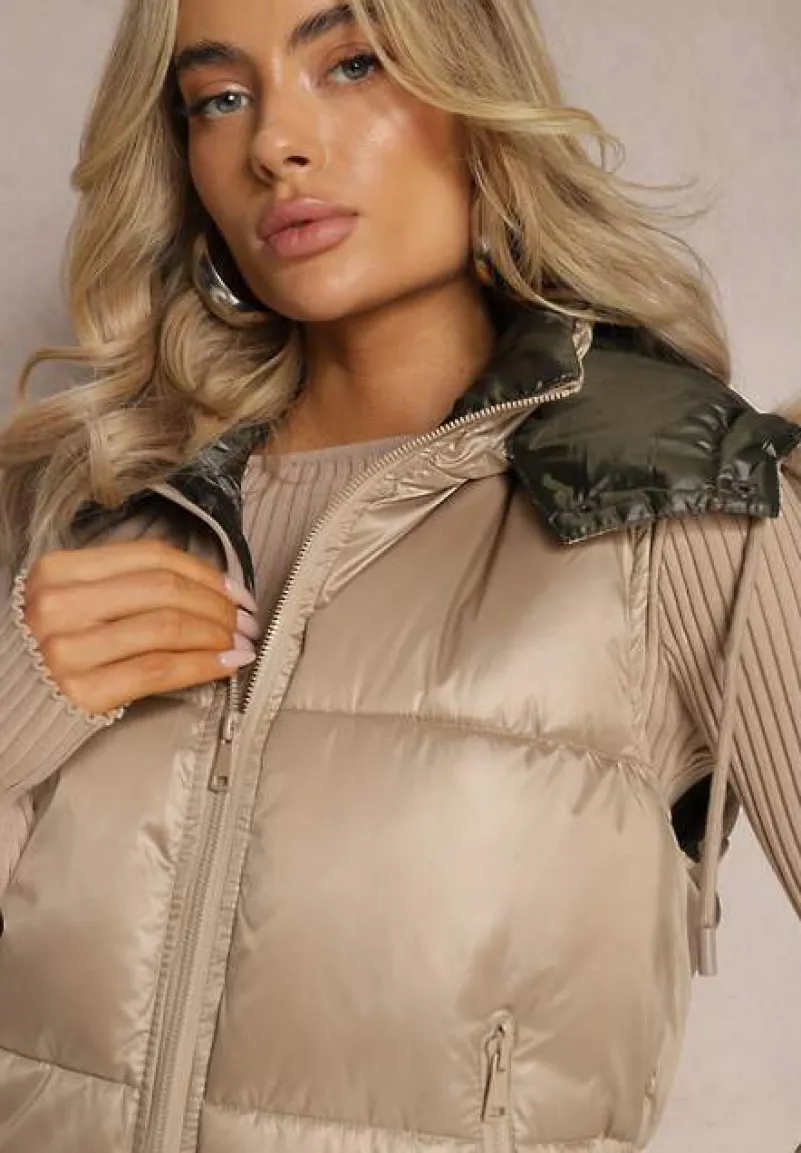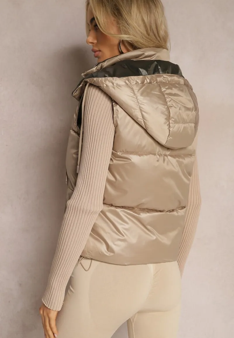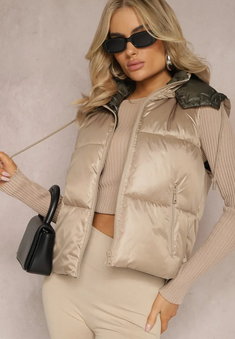 Bezrękawnik posiada zasuwane kieszonki i odpinany kaptur.