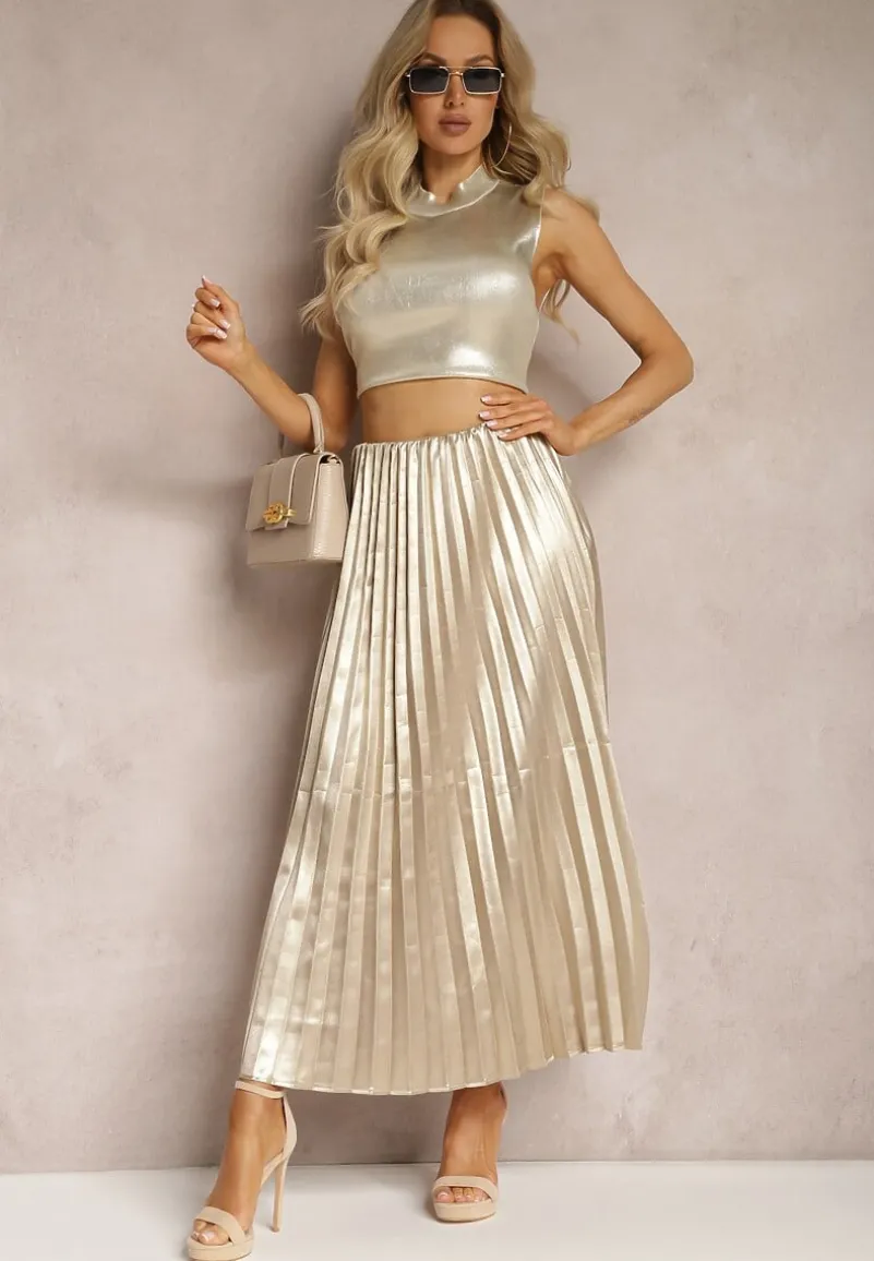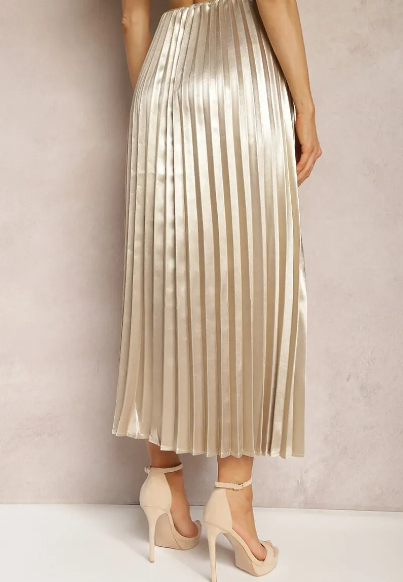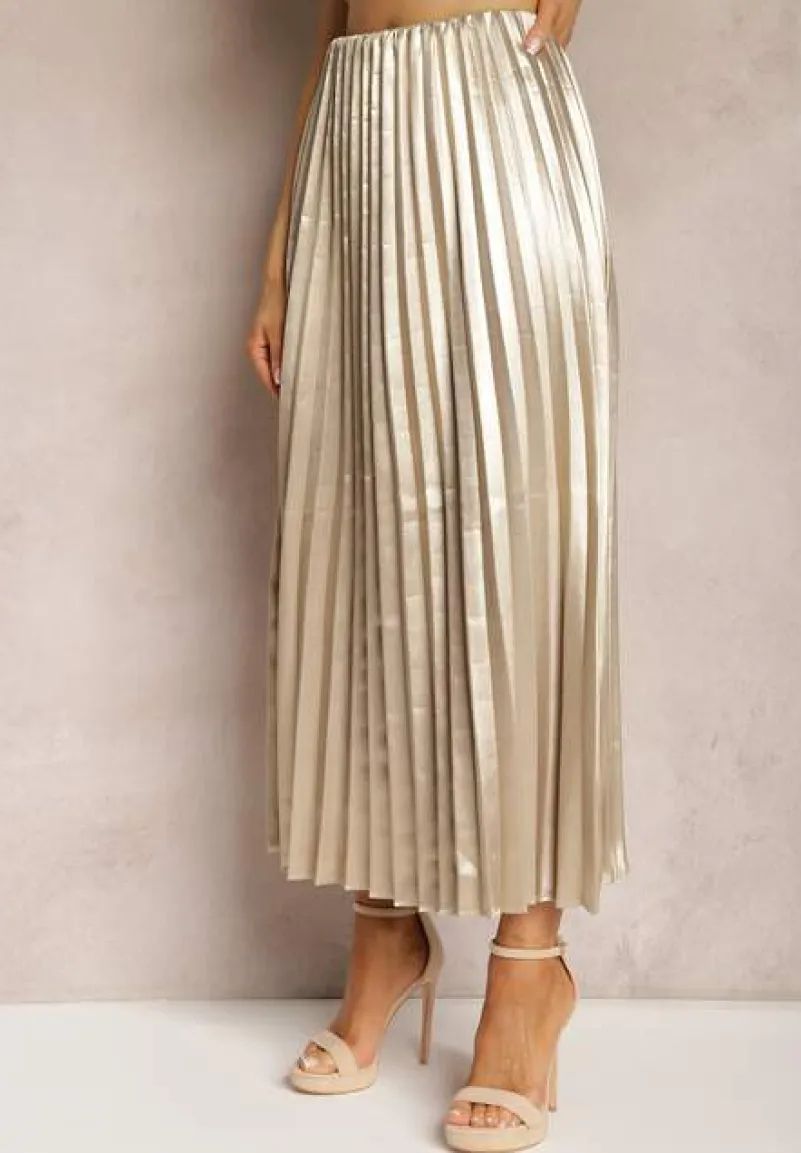 Spódnica Vilira o plisowanym fasonie i długości midi. W pasie wszyta gumka. Wykonana z metalicznej tkaniny o stylowym połysku. Bez podszewki.