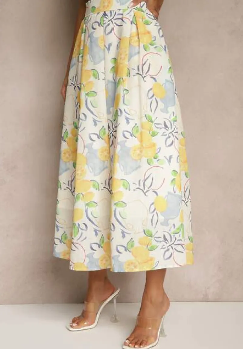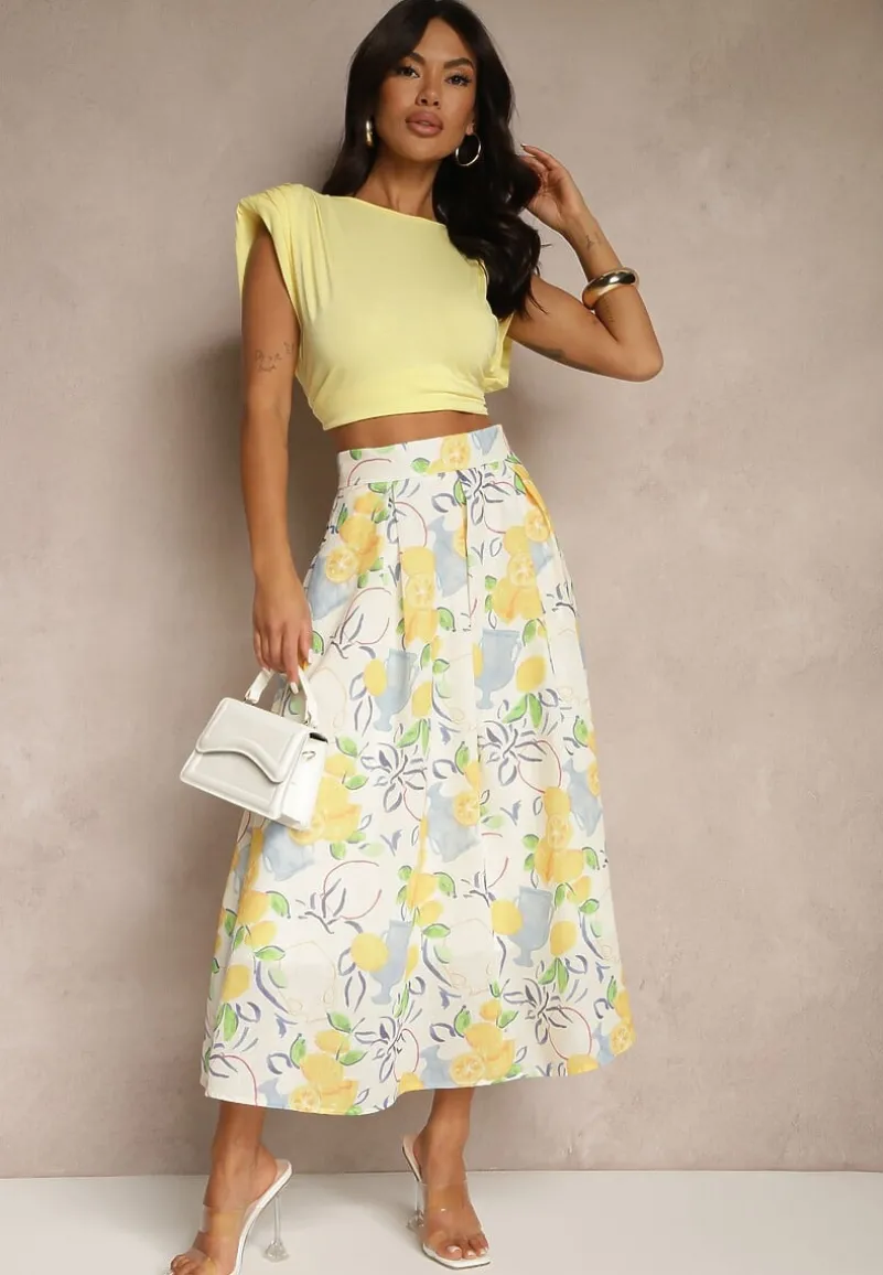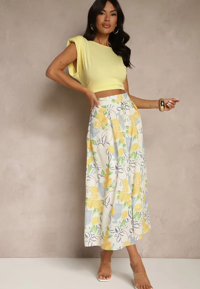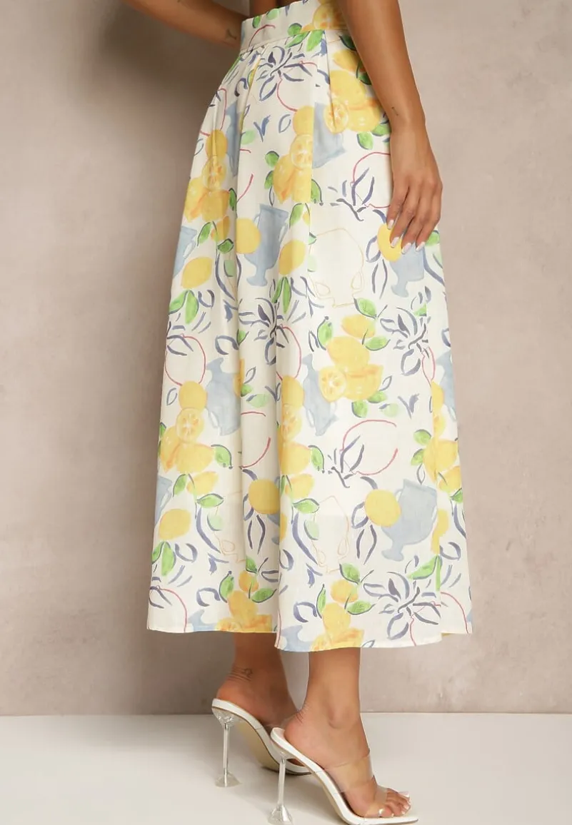 Rozkloszowana Spódnica Bawełniana Ozdobiona Printem w Cytrynki Ralzema to idealna propozycja dla modowej entuzjastki poszukującej lekkiego akcentu na co dzień. Jej kobiecy fason i wysoki stan podkreślają talię, a rozkloszowany krój i boczne kieszonki dodają dynamiki i elegancji. Z boku suwak, pod spodem podszewka z poliestru. Idealna na letnie spacery w parku czy na luźne wyjścia do miasta. Zestaw z białą bluzką i balerinami na dzień, a na wieczór dobierz eleganckie sandały i delikatną biżuterię, by stworzyć niepowtarzalną stylizację.