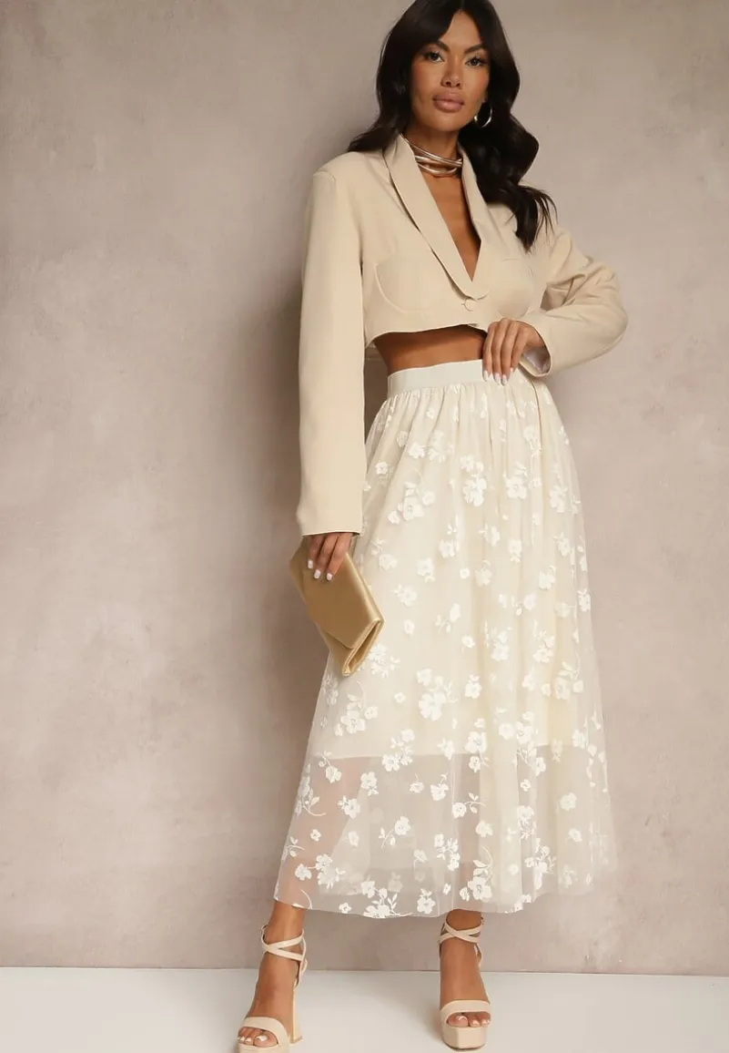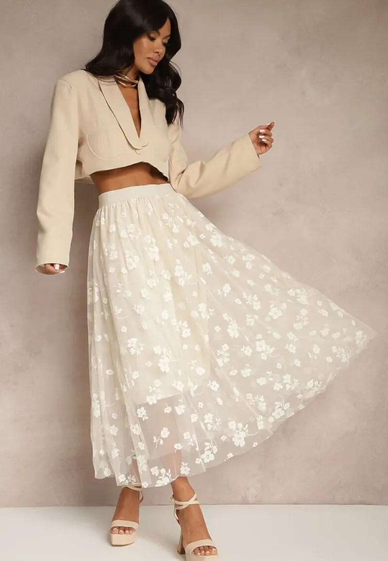 Odkryj Rozkloszowaną Spódnicę Tiulową Zdobioną Welurowym Printem w Kwiaty Folisena! Ta wyjątkowa spódnica o zwiewnym fasonie podkreśla talię dzięki elastycznej gumce w pasie, a jej subtelny kwiatowy wzór doskonale wpisuje się w obecne modowe trendy. Idealna zarówno na co dzień, jak i formalne okazje — połącz ją ze sneakersami i swetrem oversize w wersji casualowej lub postaw na elegancką bluzkę i klasyczne szpilki, aby stworzyć niezapomniany look na wieczorne wyjście. Tiulowy materiał sprawi, że każda chwila w tej spódnicy będzie pełna uroku i elegancji! Spódnica posiada podszewkę.