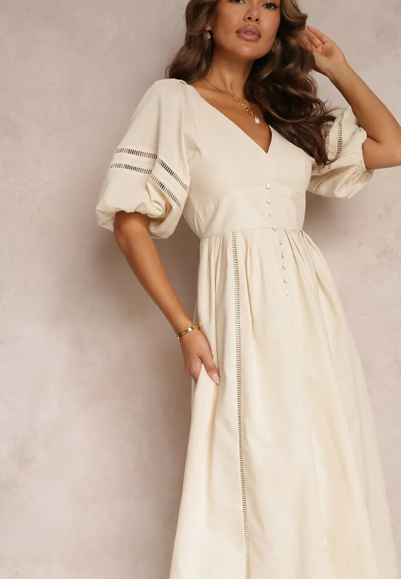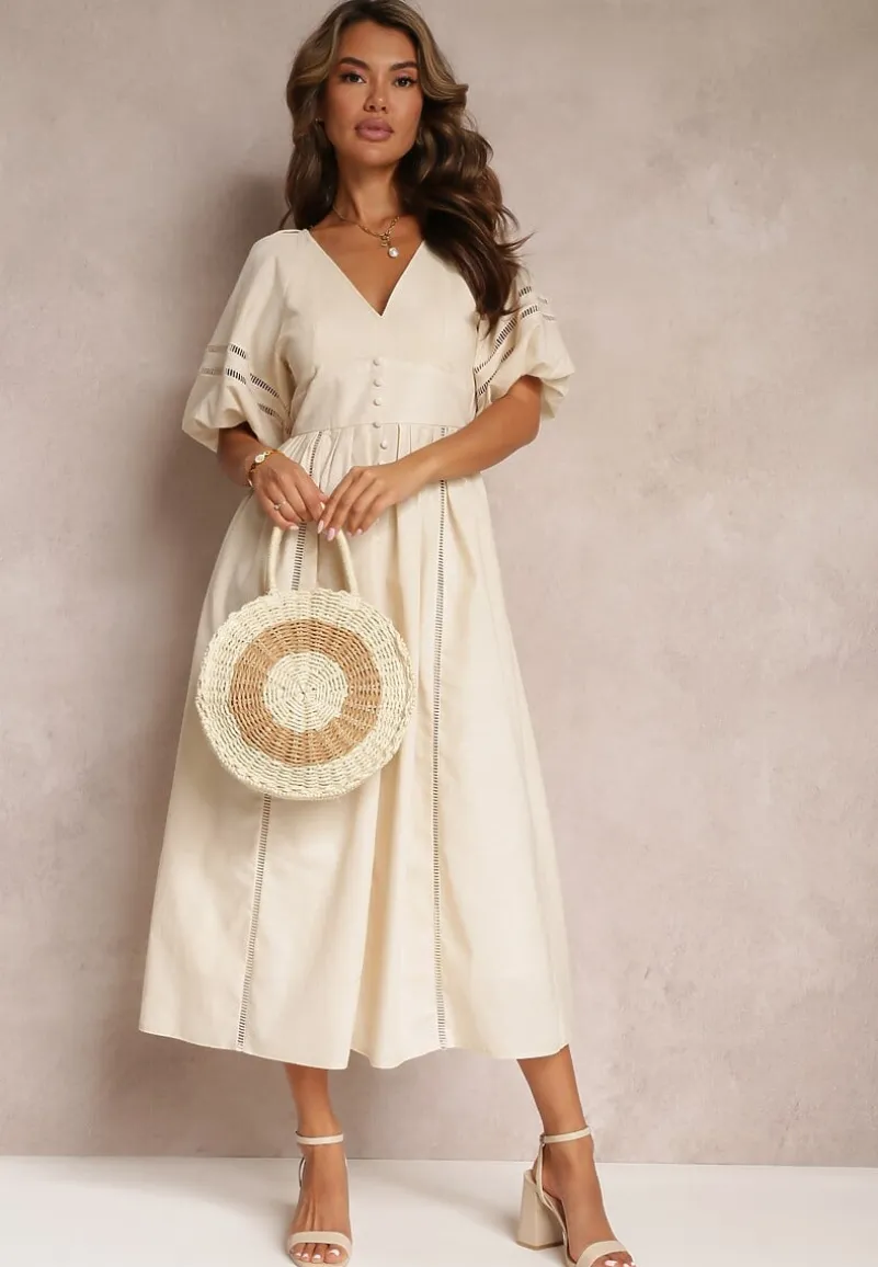Rozkloszowana Sukienka Maxi z Ażurowymi Wstawkami z Lnem i Bawełną Camya to idealny wybór dla kobiet, które pragną podkreślić swoją kobiecość w każdej sytuacji. Sukienka z gumką w pasie świetnie sprawdzi się zarówno na romantyczne wieczory, jak i casualowe spotkania z przyjaciółmi — wystarczy dodać sandały na wysokim obcasie i stylową torebkę, aby stworzyć modny zestaw. Wzory ażurowe wprowadzają nutę szyku, sprawiając, że każda kobieta poczuje się wyjątkowo i pewnie we własnej skórze!