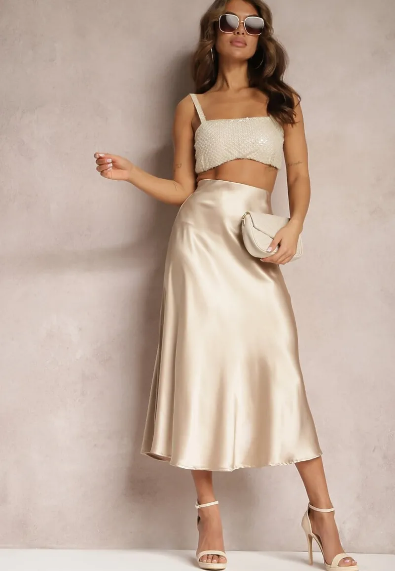 Spódnica Leose o długości mini, rozkloszowany krój. W pasie gumka, a na boku ukryty suwak.