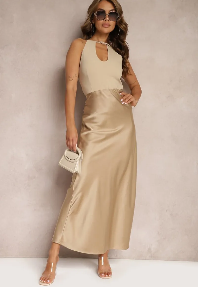 Trend alert! Spódnica Formia o długości maxi, wykonana z satynowej tkaniny. Talia high waist, w pasie wszyta gumka. Model bez podszewki. Wpisz się w najgorętsze trendy!
