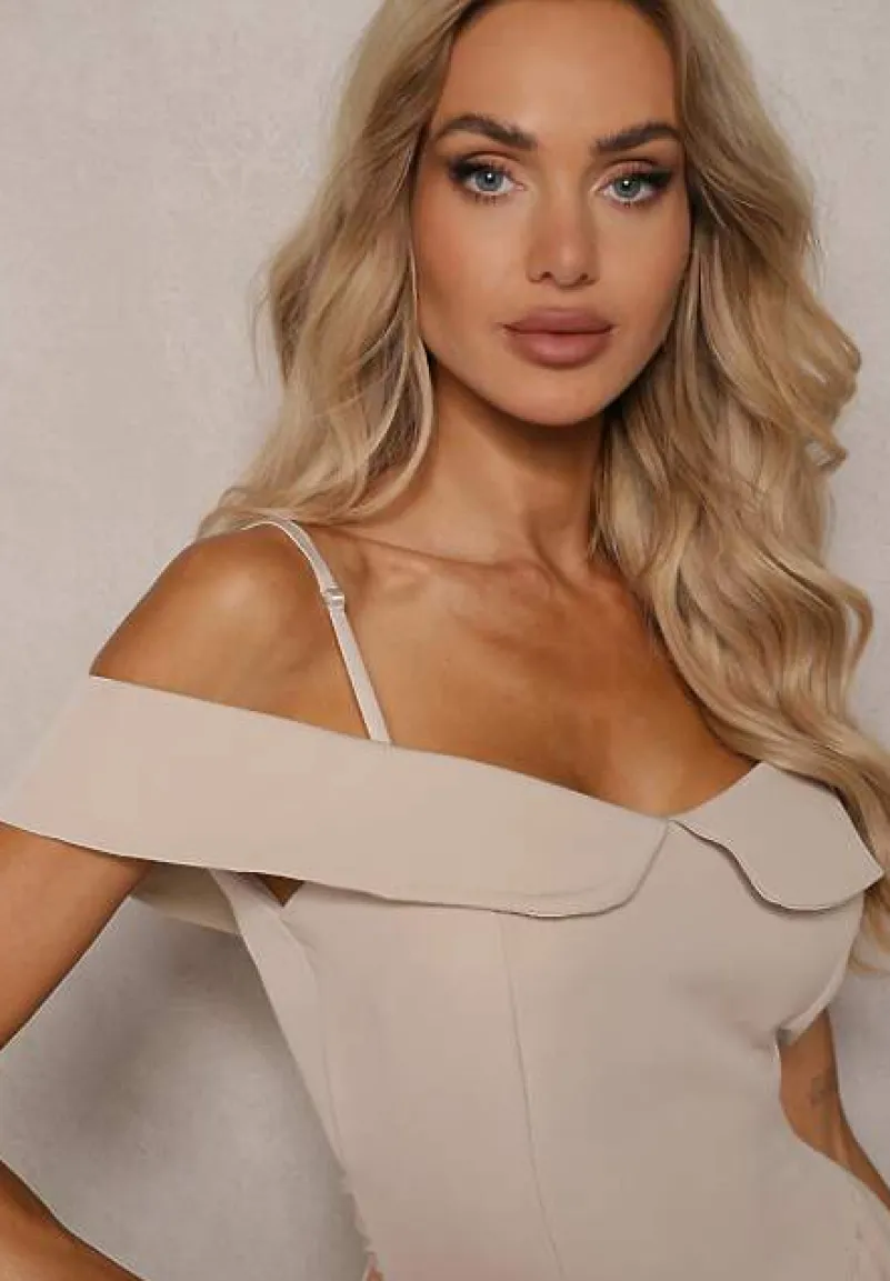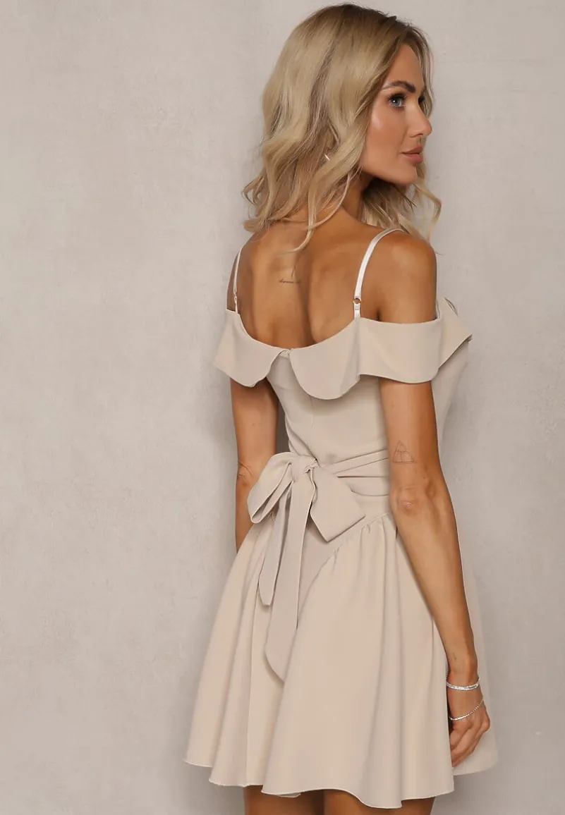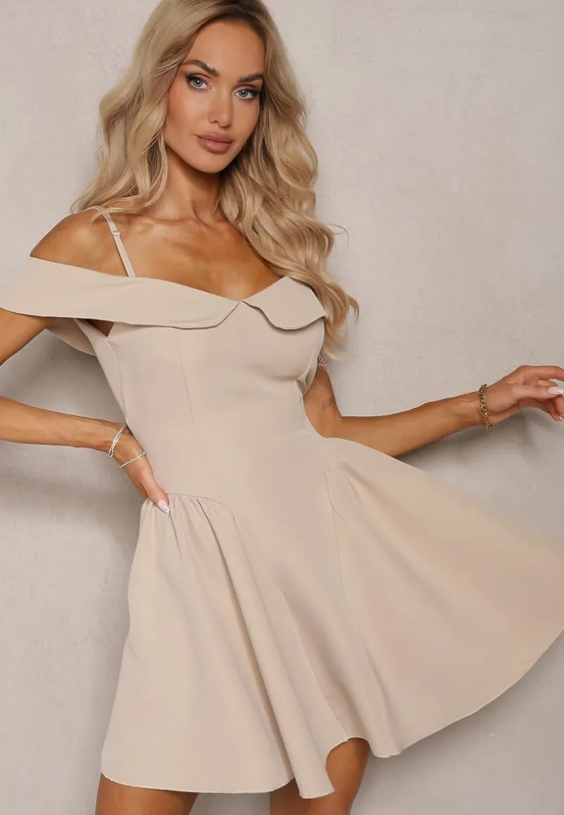 Beżowa Sukienka na Ramiączkach z Regulacją z Usztywnionymi Miseczkami Miviora