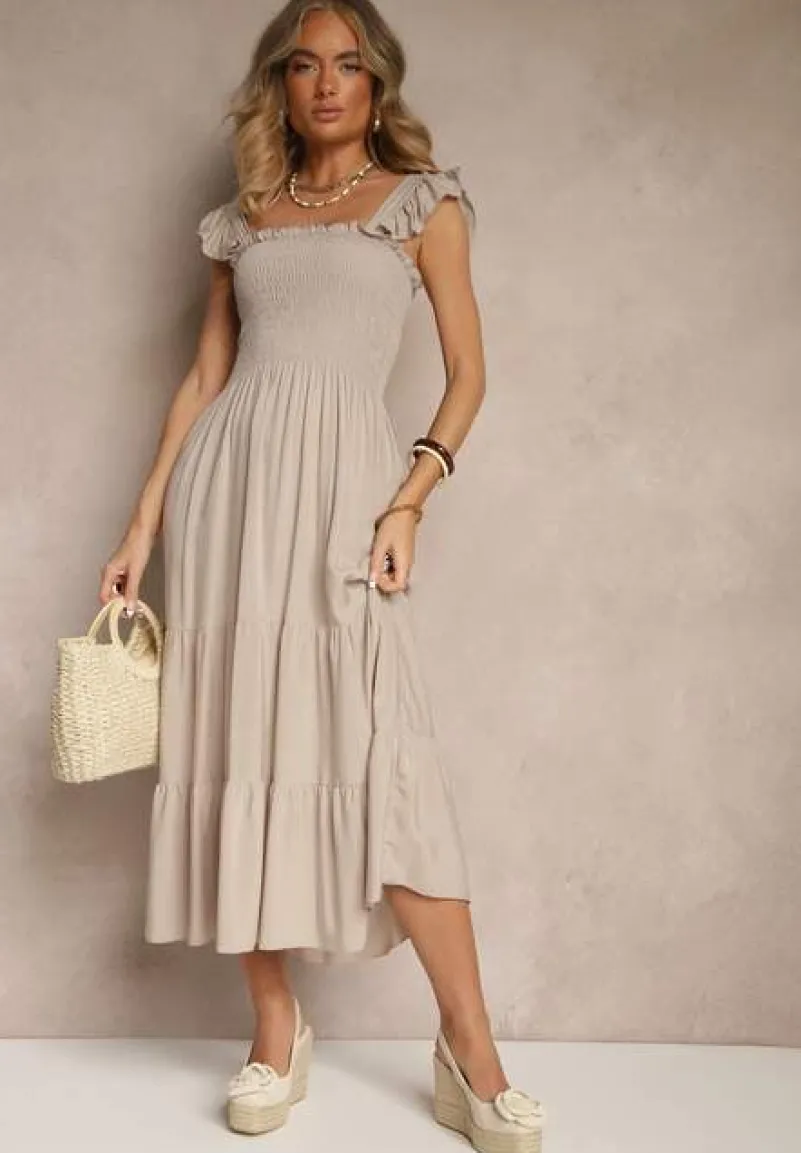 Sukienka Mevalys to must-have dla każdej fashionistki! Oryginalny krój z falbanami na ramiączkach tworzy kobiecy i rozkloszowany fason, który pięknie podkreśla talię i dodaje lekkości sylwetce. Wykonana z bawełny, zapewnia swobodę ruchów przez cały sezon. Zestaw ją z espadrylami i słomkowym kapeluszem na casualowy look lub z eleganckimi sandałami na obcasie i subtelnymi dodatkami, a stworzysz outfit idealny na romantyczną kolację przy świetle świec.