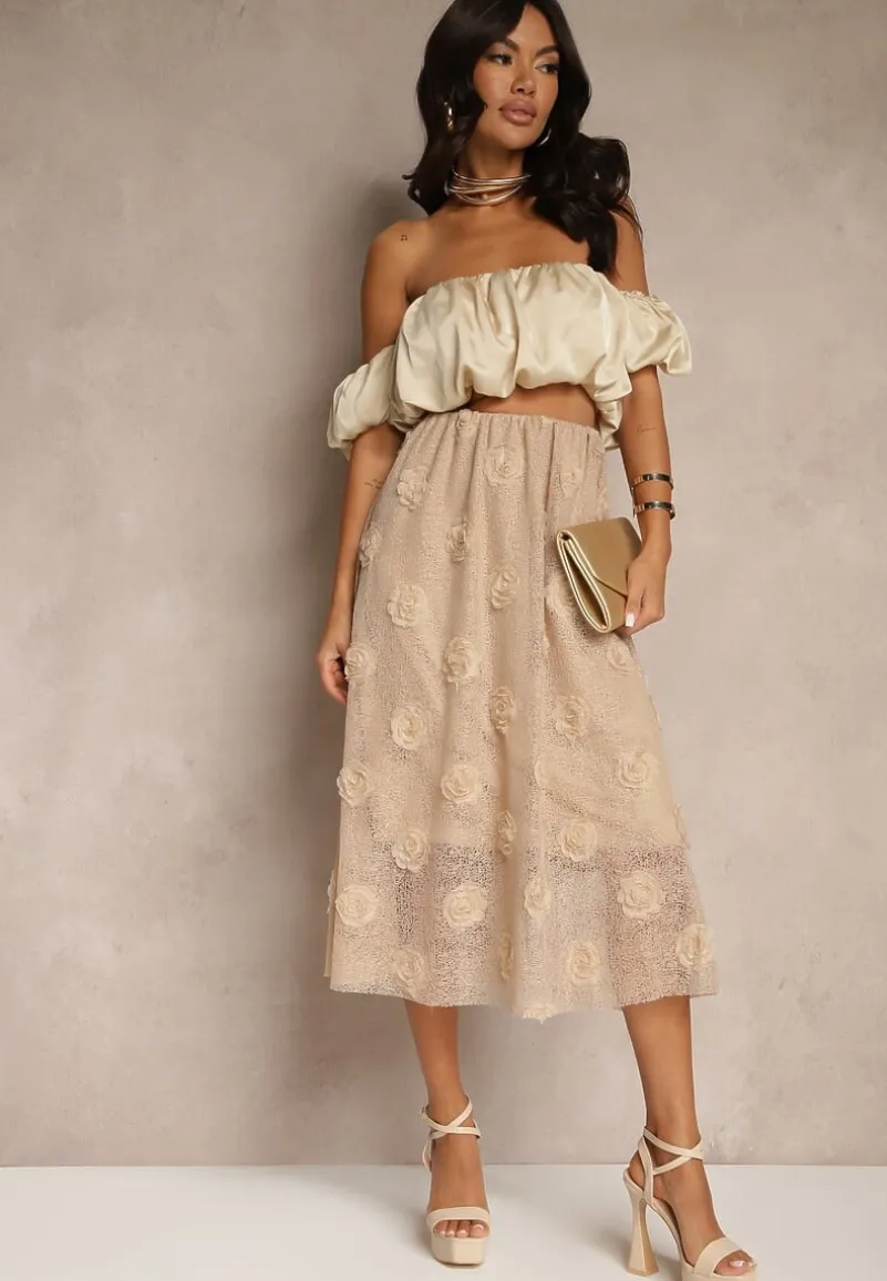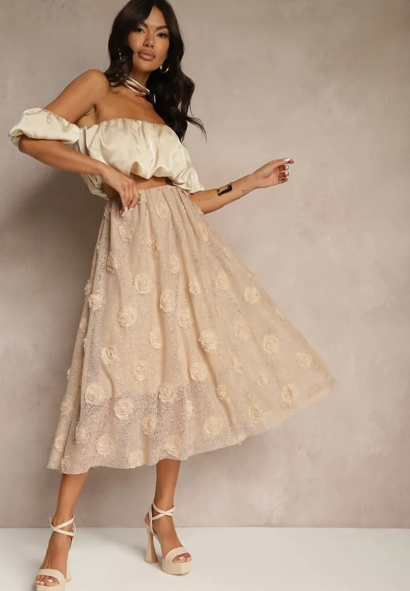 Odkryj szyk i wygodę z Tłoczoną Spódnicą o Rozkloszowanym Kroju Folunetta! Ta niezwykle stylowa spódnica z gumką w pasie zachwyca eleganckim fasonem i romantycznym designem, który idealnie sprawdzi się na każdą okazję, od spacerów po parku po wieczorne przyjęcia. Wykonana ze strukturalnego materiału, doskonale podkreśli Twoją sylwetkę, zapewniając jednocześnie swobodę ruchów. Stylizuj ją z delikatną bluzką i sandałami na obcasie na co dzień lub z klasycznym topem i eleganckimi szpilkami, aby zachwycić na formalnych spotkaniach! Spódnica posiada elastyczną podszewkę.