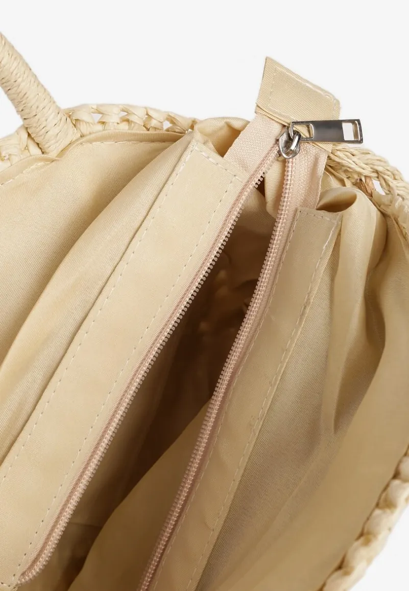 Torebka Solaura to must-have dla każdej modnej kobiety! Jej okrągły kształt na suwak z kieszonką w środku i pleciona struktura przyciągają wzrok, a swobodne frędzle dodają lekkości i letniego charakteru. Stylizuj ją z luźnym kombinezonem i sandałami na koturnach/