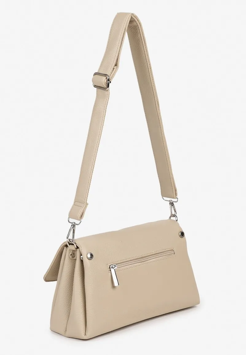 Trapezowa Torebka Typu Listonoszka z Klapą Gesselle to niezastąpiony must-have w szafie każdej modowej entuzjastki. Jej trójkomorowy fason umożliwia doskonałą organizację, co czyni ją praktycznym wyborem na co dzień lub spotkania ze znajomymi. Wyposażona w regulowany pasek z możliwością odpięcia, torebka zachwyca swoim eleganckim fasonem, który doda szyku zarówno casualowym, jak i formalnym outfitom. Świetnie skomponuje się z oversize’owym swetrem i jeansami na co dzień, ale również z elegancką sukienką oraz szpilkami na wieczorne wyjście. Musisz ją mieć! Torebka nie mieści formatu A4.