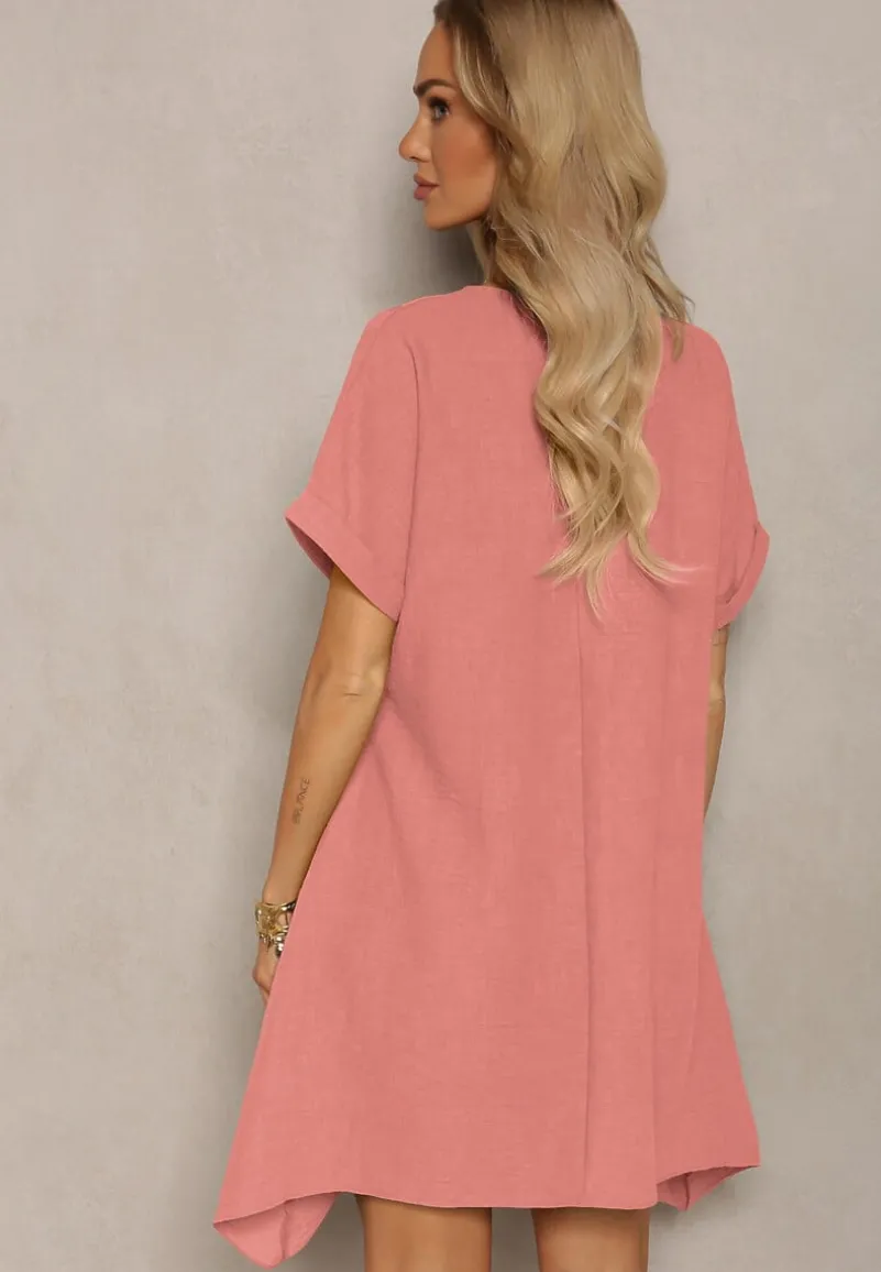 Odkryj szyk i wygodę z tuniką sukienką z krótkim rękawem i asymetrycznym wykończeniem Fumiana! Jej zwiewny fason zapewnia swobodę ruchów, a subtelny dekolt z zapięciem na guziki na karku dodają nonszalancji. Stylizuj ją na co dzień ze sneakersami i torebką shopperką lub postaw na mokasyny i trencz na eleganckie spotkanie z przyjaciółmi. Sukienka tunika Fumiana to doskonała propozycja dla kobiet, które cenią modową nonszalancję i chcą wyglądać zjawiskowo w każdej sytuacji!