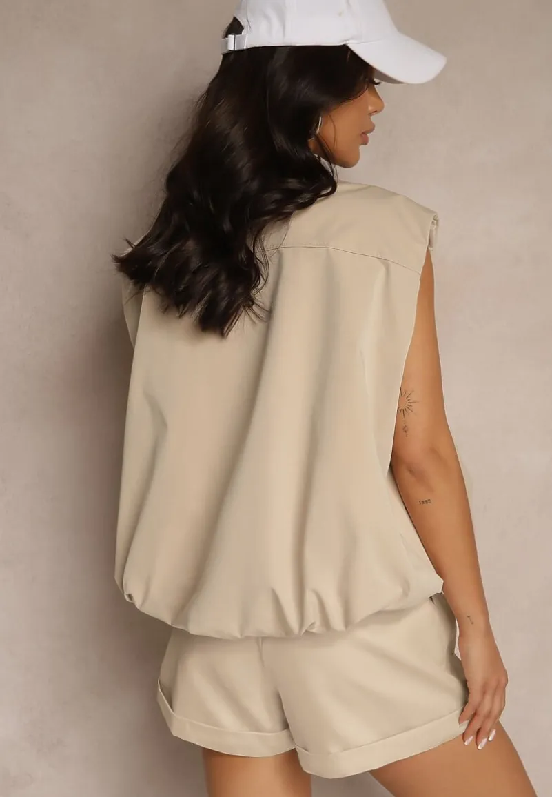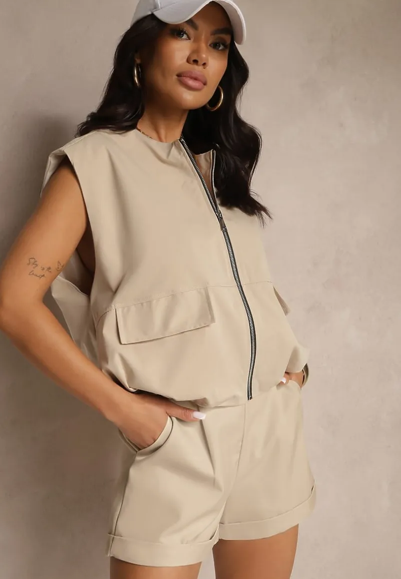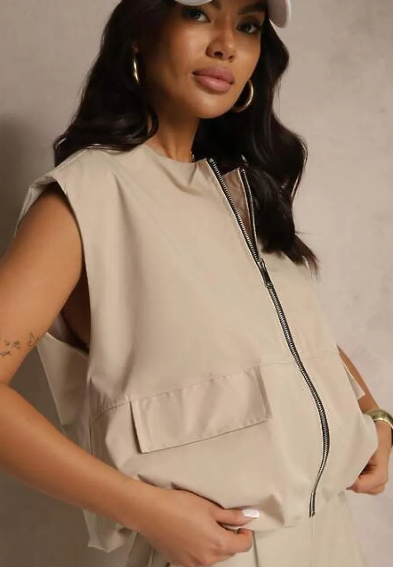 Kamizelka z Soroną ze Ściągaczem i Kieszeniami z Klapami Fevalore to must-have w garderobie każdej modowej entuzjastki! Jej minimalistyczny fason ze ściągaczem w pasie doskonale wpisuje się w najnowsze trendy, a praktyczne kieszenie z klapami to świetne rozwiązanie na każdą okazję. Wykonana z wysokiej jakości materiałów, świetnie sprawdzi się zarówno w wiosenne, jak i jesienne dni. Stylizuj ją z ulubionymi jeansami i sneakersami na co dzień lub postaw na garniturowe spodnie, koszulę i mokasyny do biura — możliwości są nieograniczone!
