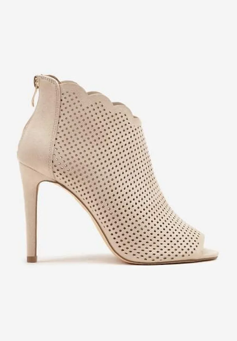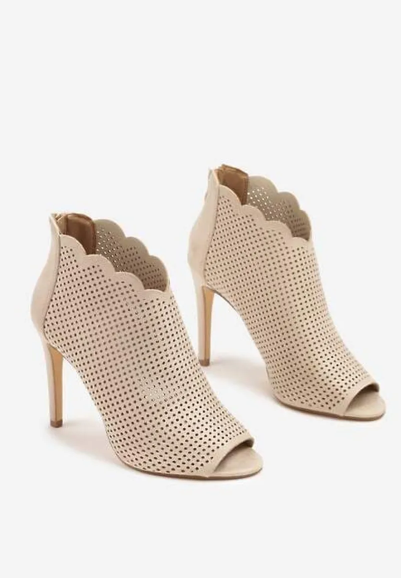 Beżowe Ażurowe Sandały Vices na Szpilce Selanna