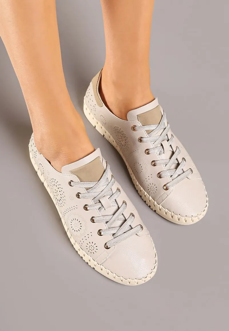 Odkryj wyjątkowe ażurowe tenisówki Zarelle! Te niezwykle modne buty posiadają płaską podeszwę, która sprawdzi się doskonale zarówno w casualowych stylizacjach, jak i podczas formalnych okazji. Ozdobne przeszycia przy podeszwie dodają im charakteru, a sznurowana cholewka zapewnia idealne dopasowanie do stopy. Zestaw je z ulubionymi jeansami i białą koszulą na spotkanie ze znajomymi lub z elegancką sukienką i marynarką na wieczorne wyjście — w każdym wydaniu poczujesz się pewnie i z klasą!