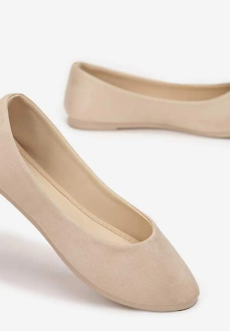 Balerinki Rhaenertise wsuwane, z cholewką odsłaniającą kostkę i zaokrąglonym, klasycznym noskiem. Na płaskiej podeszwie w takim samym kolorze. Wykonane z ekozamszu. Balerinki Rhaenertise są niezwykle uniwersalne – dopasujesz je do większości sukienek, spódnic i spodni. Wybierz rozmiar o 1 większy niż zazwyczaj.
