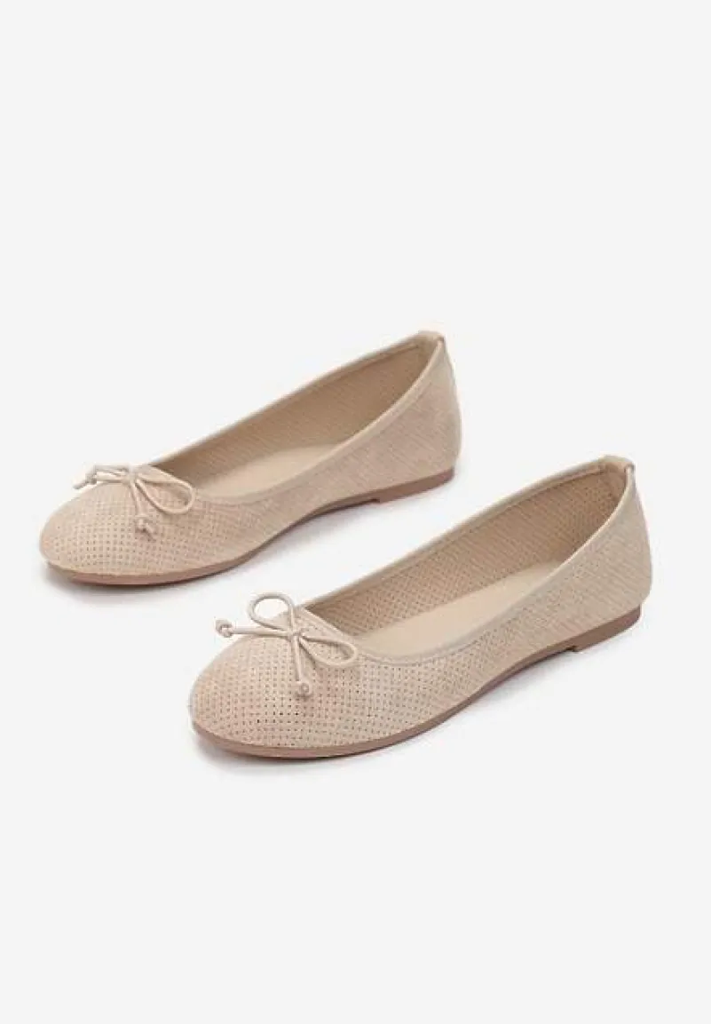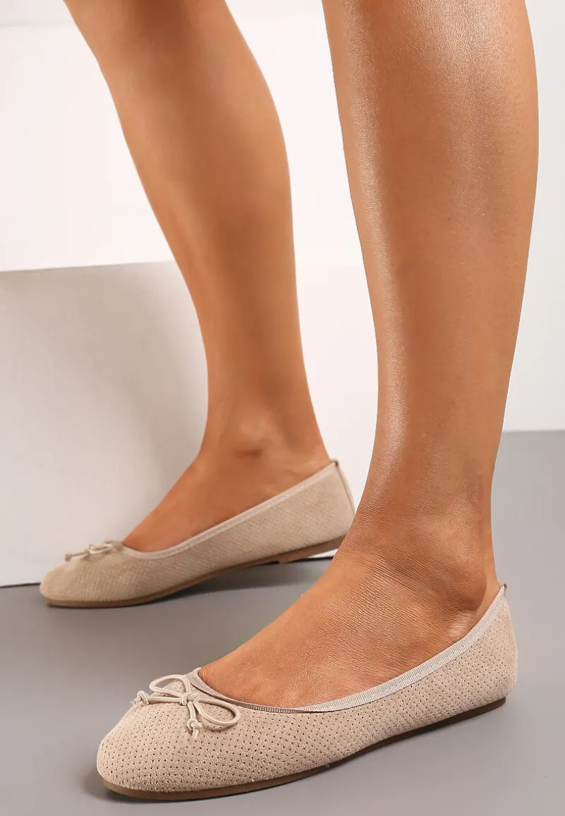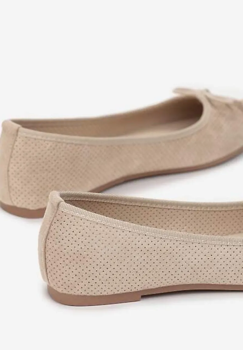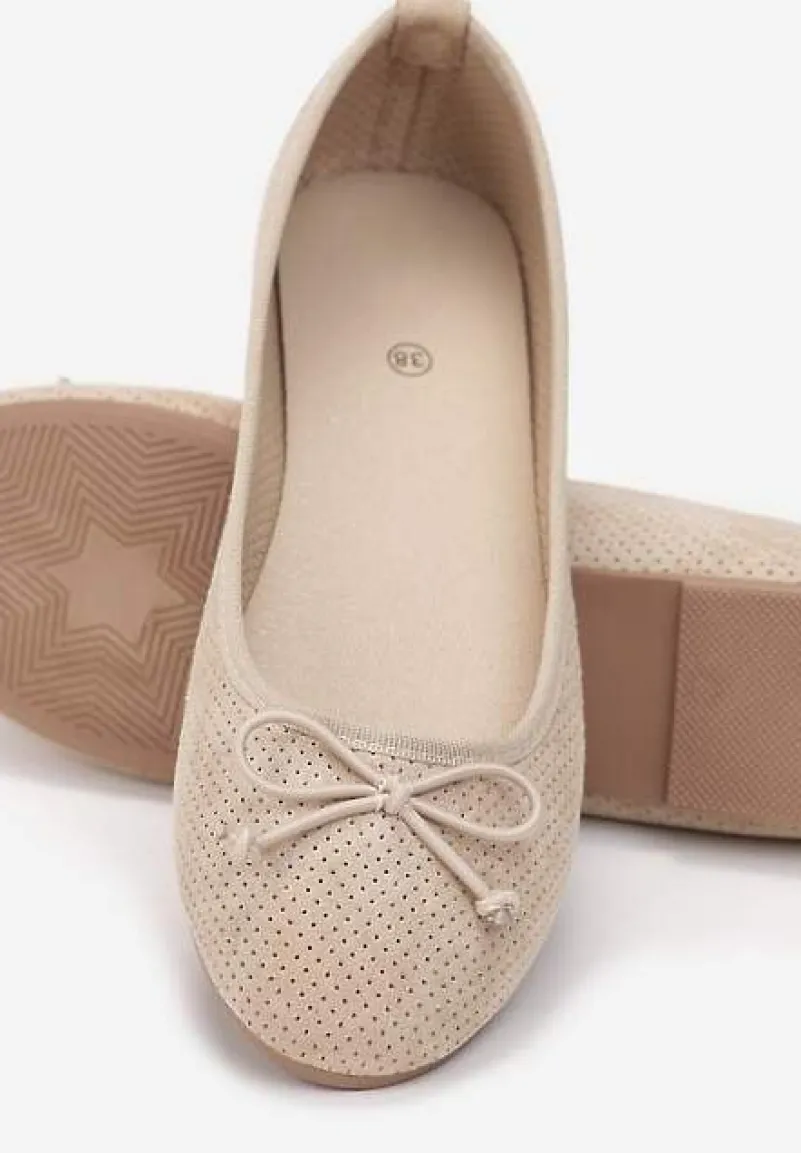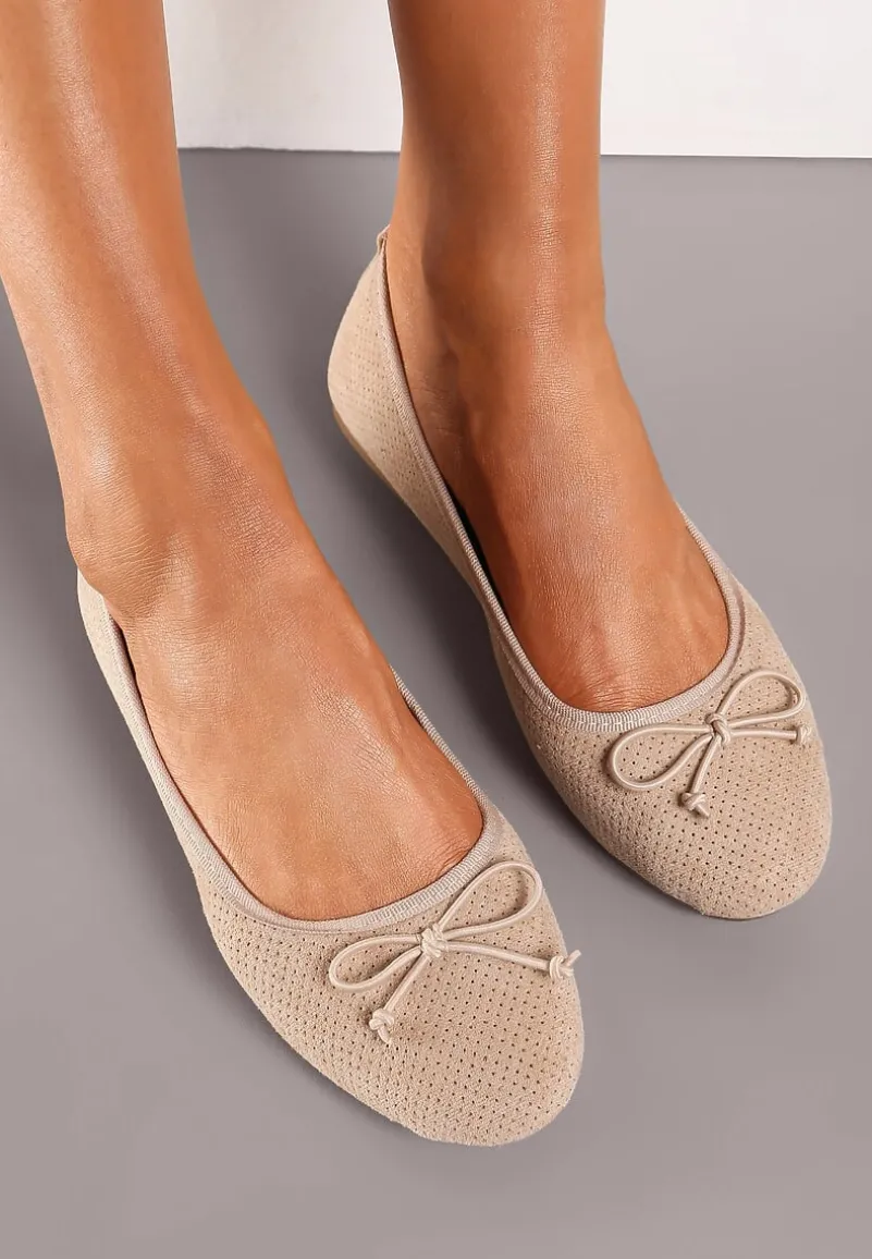 Balerinki Sthugnaela osadzone na płaskiej podeszwie z bieżnikiem. Wsuwane, z noskiem o zaokrąglonej krawędzi. Ozdobione subtelną kokardą na palcach, w tym samym odcieniu. Wykonane z ekozamszu z drobną perforacją. Wpasują się zarówno w casualowe outfity, jak i te eleganckie. Uniwersalne baleriny są obowiązkowym dodatkiem w szafie każdej kobiety!
