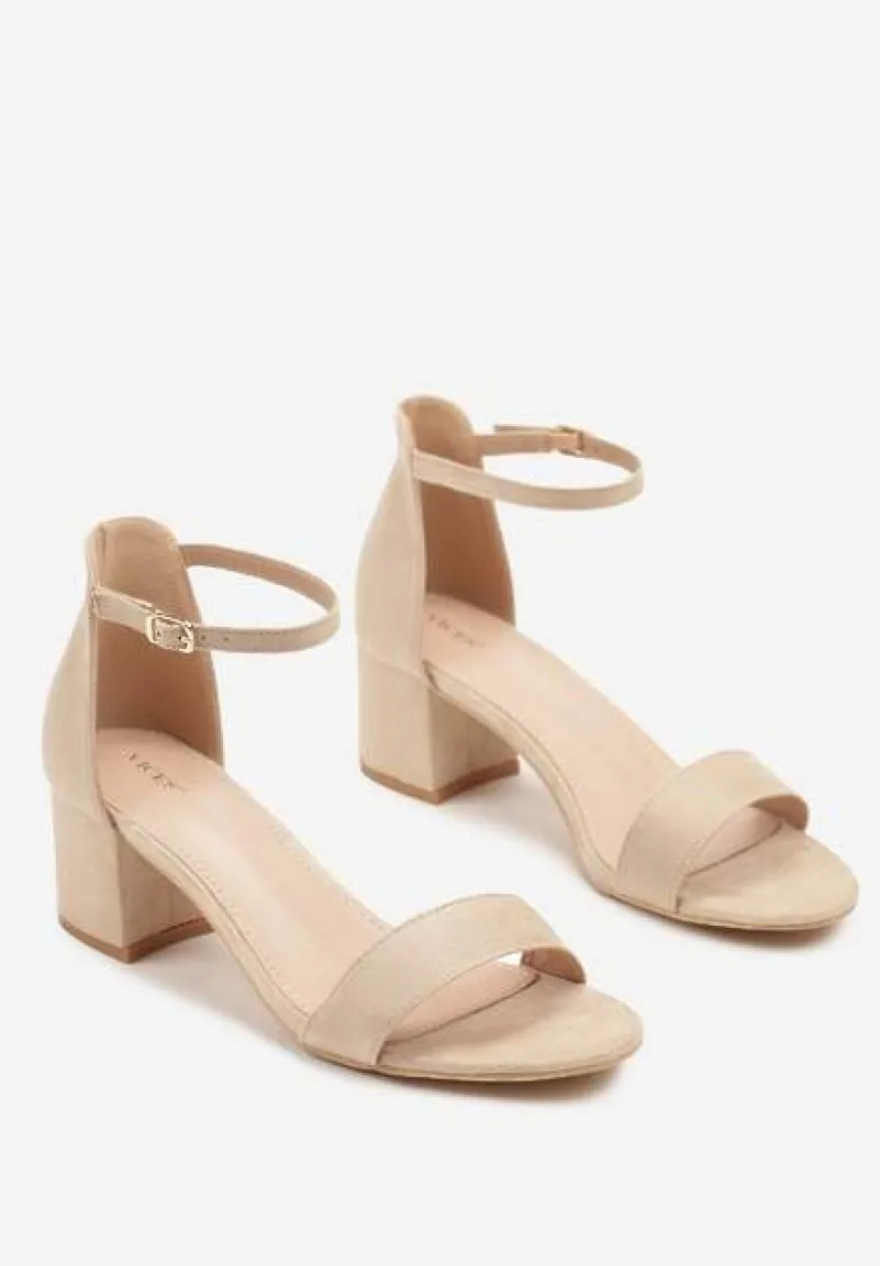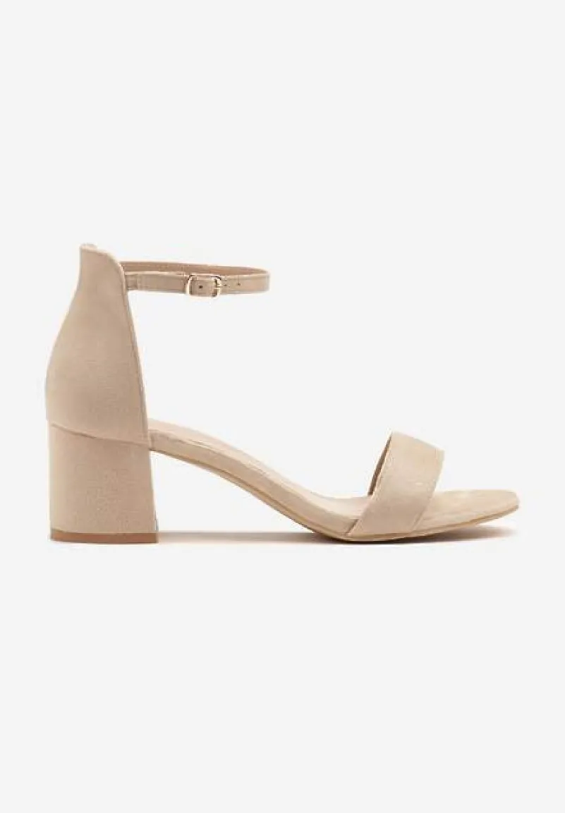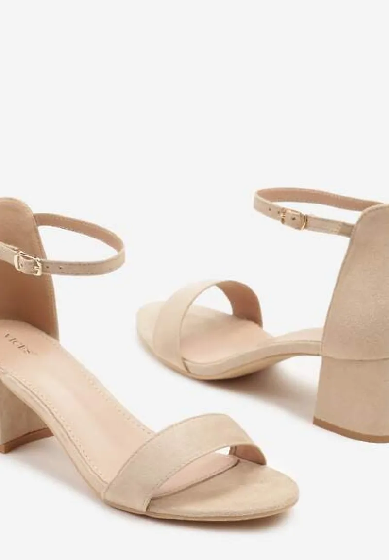 Beżowe Basicowe Sandały na Słupku Vices z Paskiem Wokół Kostki Varhira