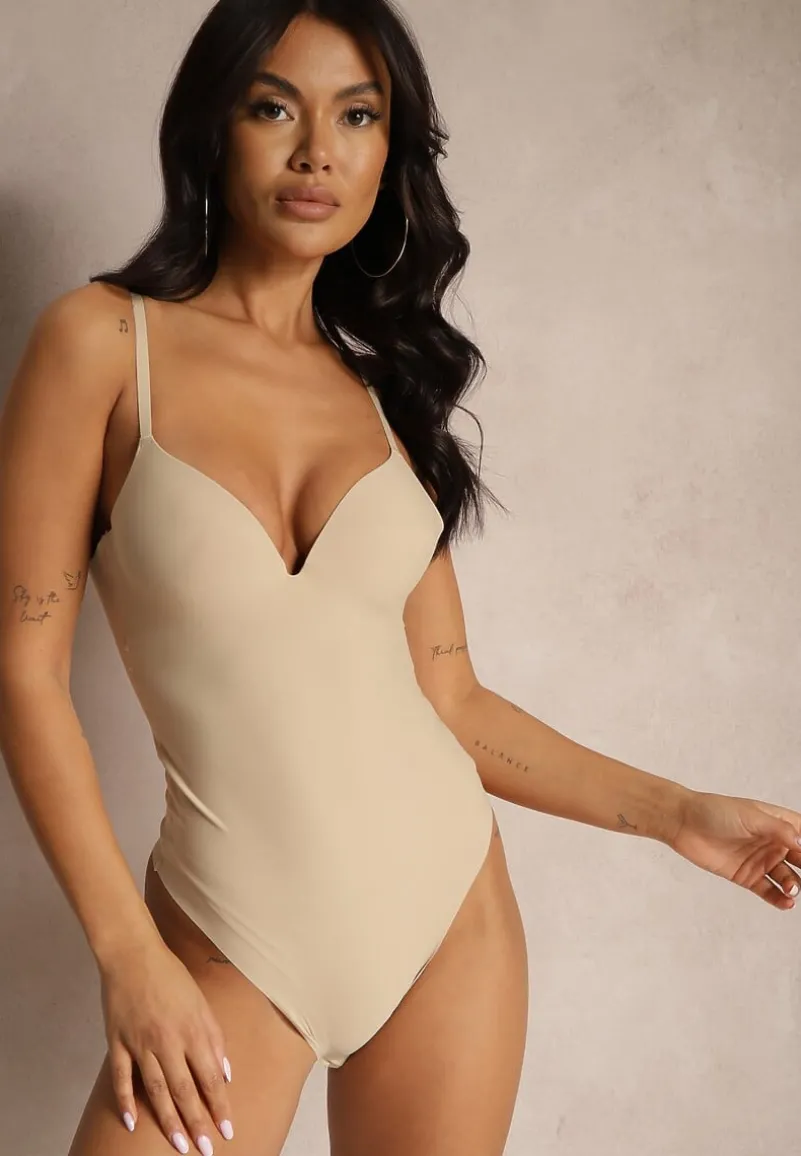Beżowe Body Modelujące na Regulowanych Ramiączkach z Usztywnieniem Ilaniren