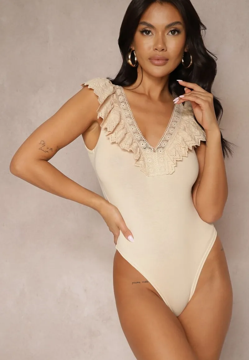 Body Senalirae to wyjątkowe połączenie komfortu bawełny i romantycznego wdzięku. Fason z dekoltem w serek pięknie podkreśla linię szyi, a dodatkowa falbanka z koronki niesie ze sobą nutę wyrafinowania. Brak rękawów sprawia, że jest to wybór idealny na sezon wiosenno-letni, który z łatwością dopasuje się do różnych okazji. Body znakomicie sprawdzi się zarówno w codziennych stylizacjach z jeansami i balerinami, jak i na bardziej formalne okazje, połączone z ołówkową spódnicą czy cygaretkami i szpilkami. Poczuj się swobodnie i pewnie w każdej sytuacji! Body posiada zapięcie u dołu.