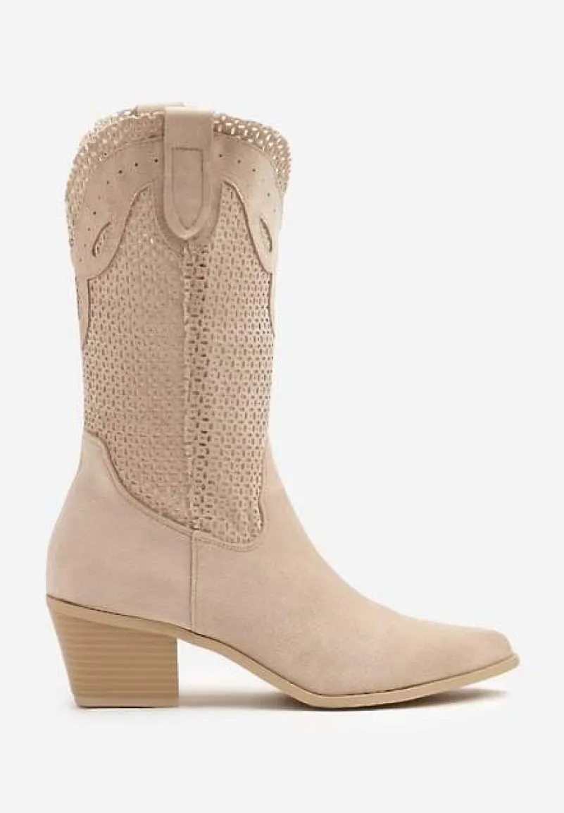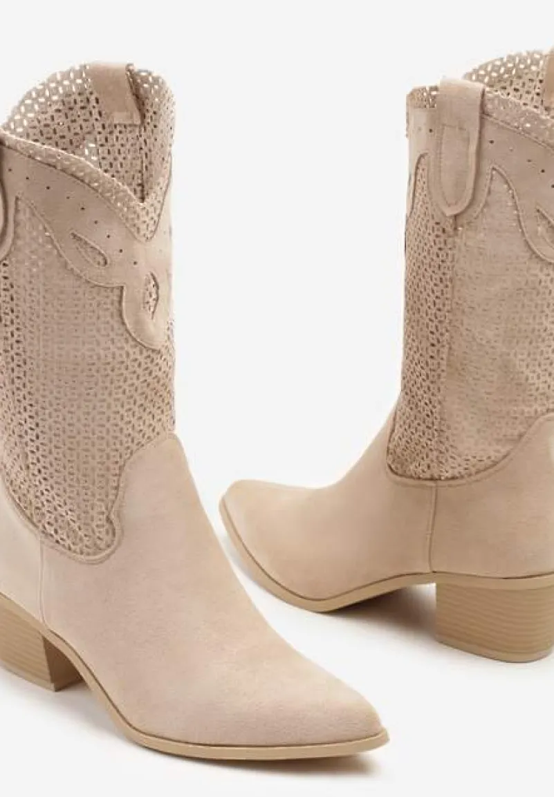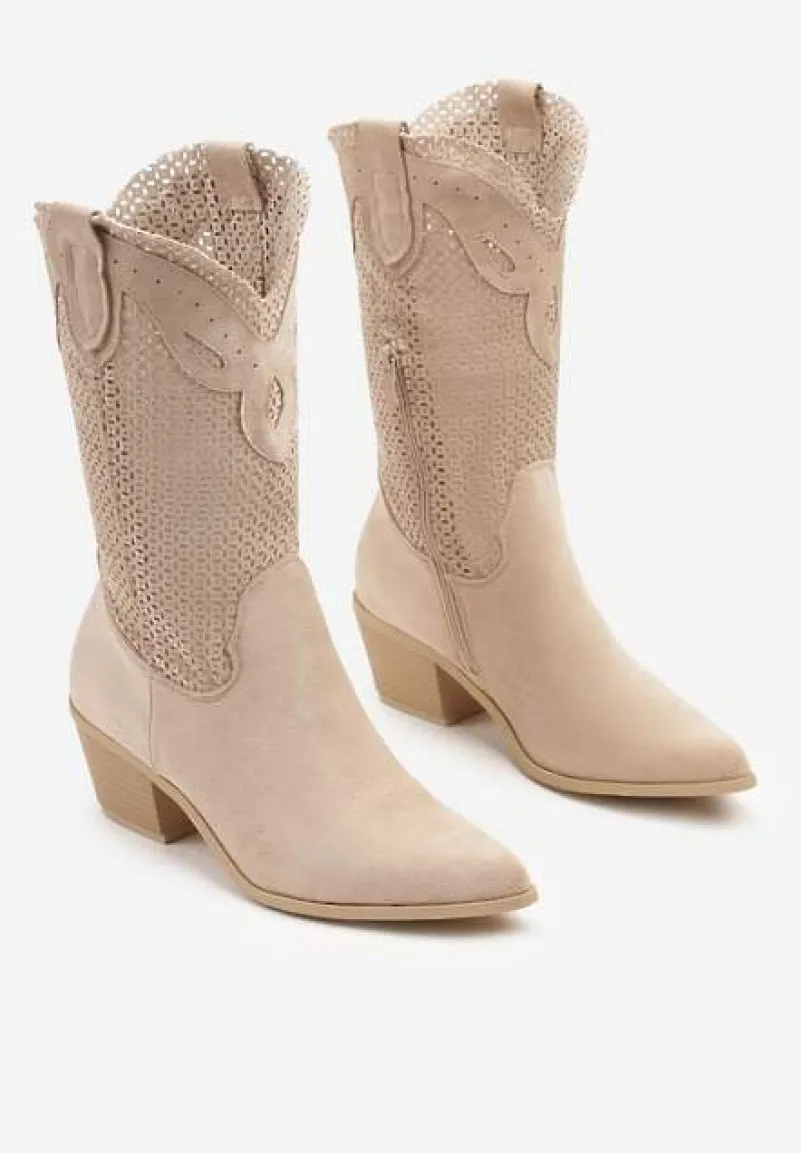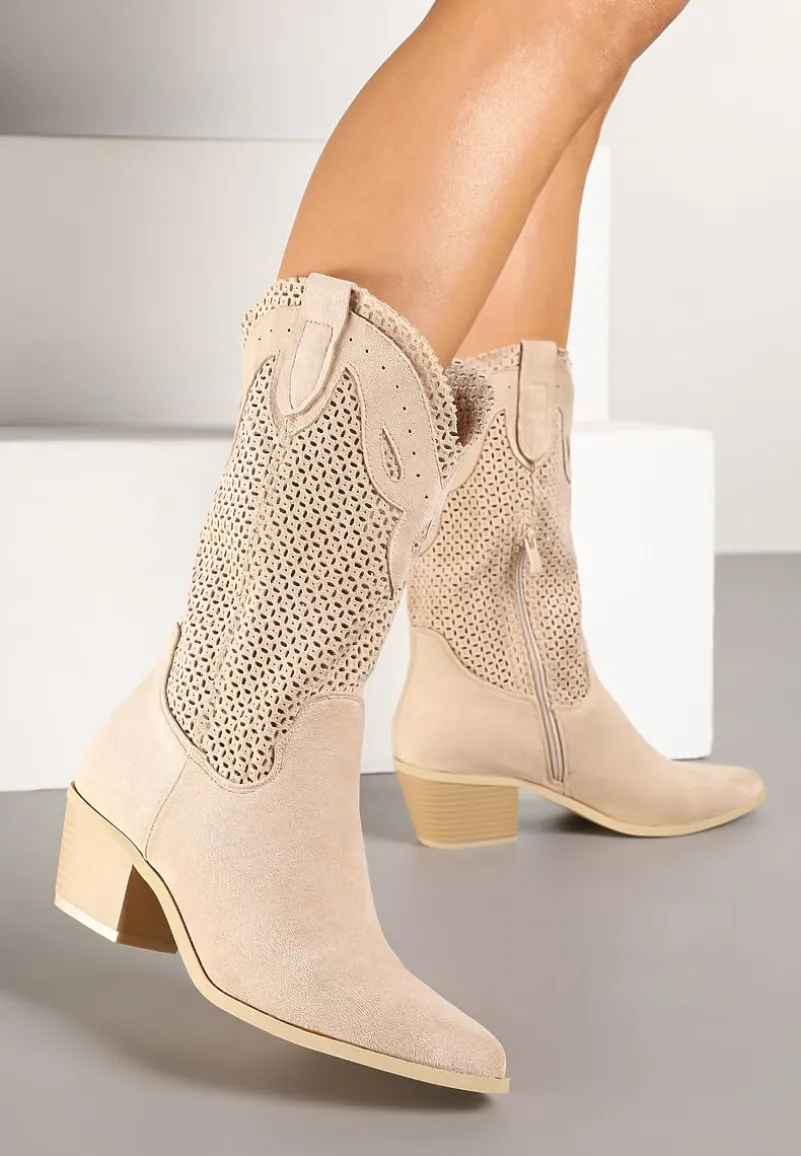 Botki Felmira to stylowe kowbojki na modnym słupku, które dodadzą charakteru Twoim codziennym i formalnym stylizacjom. Ażurowa cholewka nadaje im lekkości i oryginalności, idealnie wpisując się w najnowsze trendy sezonu. Praktyczne zapięcie na suwak zapewnia dopasowanie. Świetnie się prezentują z jeansami i luźnym swetrem na co dzień, jak i z elegancką sukienką na wieczorne wyjścia, podkreślając Twoją pewność siebie i wyczucie stylu.