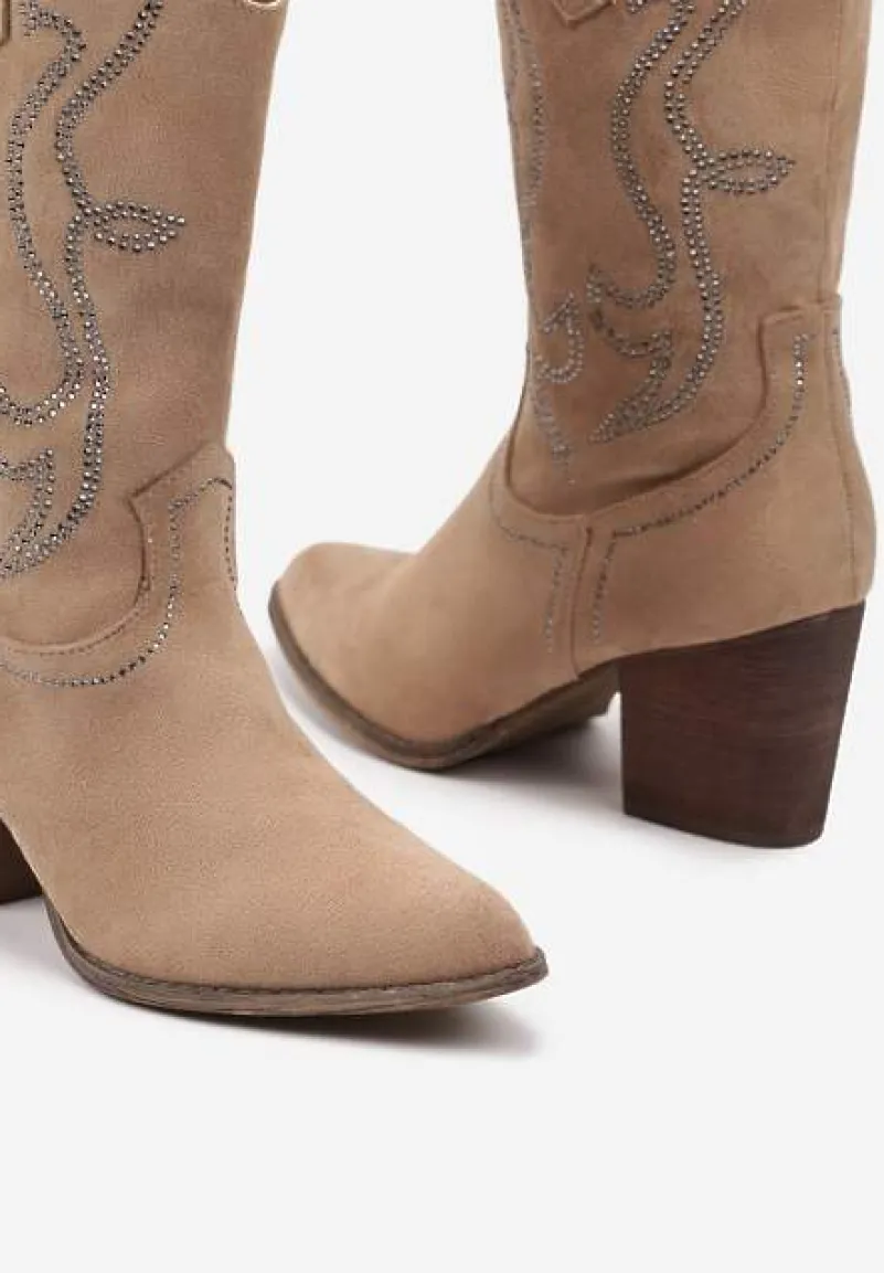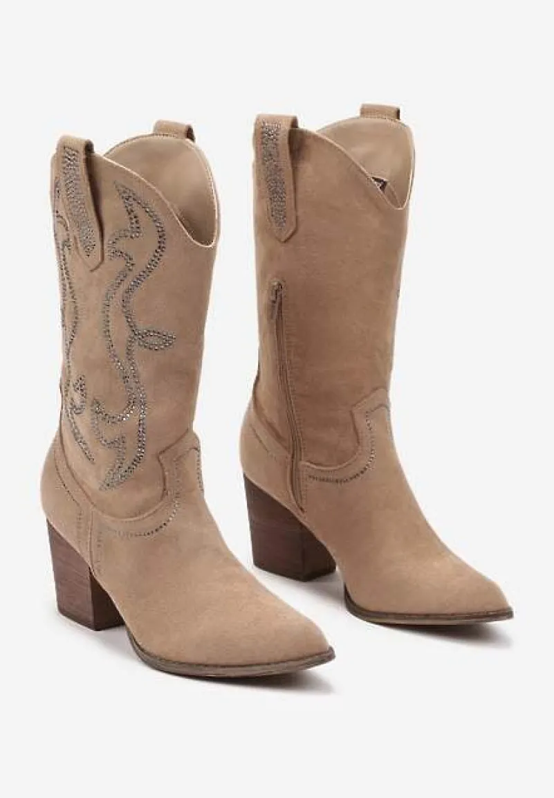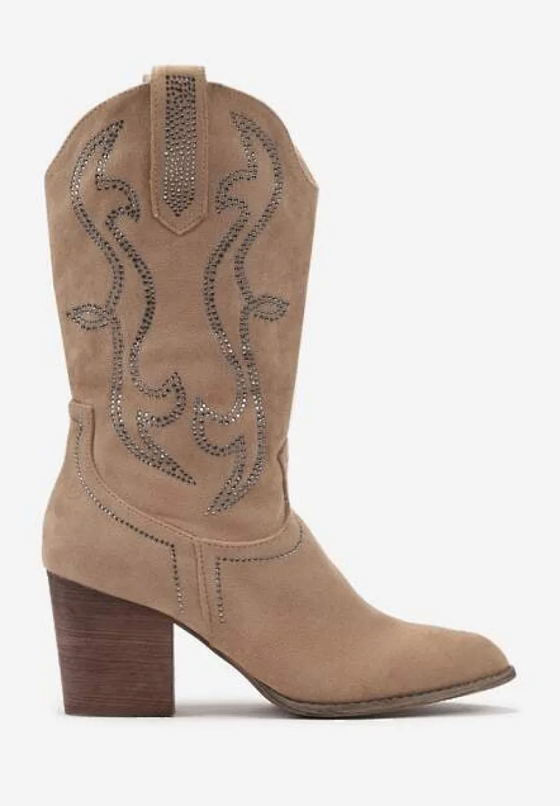 Botki kowbojki na obcasie ozdobione wzorem w drobne cyrkonie to must have dla miłośniczek stylu boho!