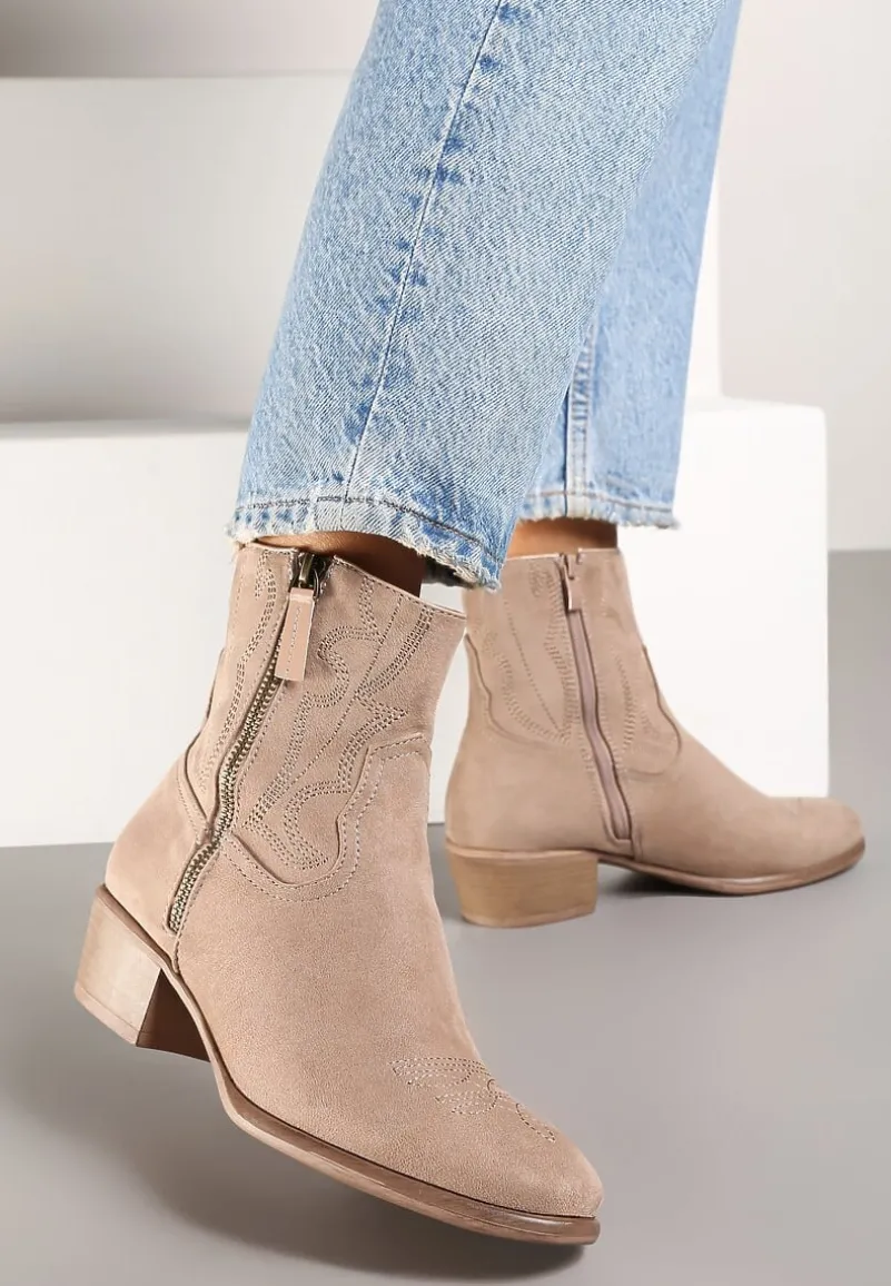 Botki kowbojki Malwida to idealne połączenie klasyki z nutką westernowego stylu, które dodadzą szyku każdej stylizacji. Osadzone na eleganckim słupku, oferują doskonałe wsparcie na całodziennych eskapadach. Praktyczne zapięcie na suwak ułatwia szybkie zakładanie. Stylizuj je z jeansami i luźnym swetrem na co dzień lub zestawiaj z ołówkową spódnicą i elegancką bluzką na nieco bardziej formalne wyjścia.