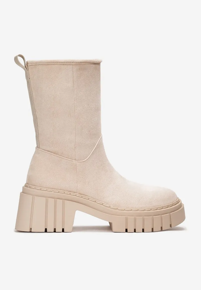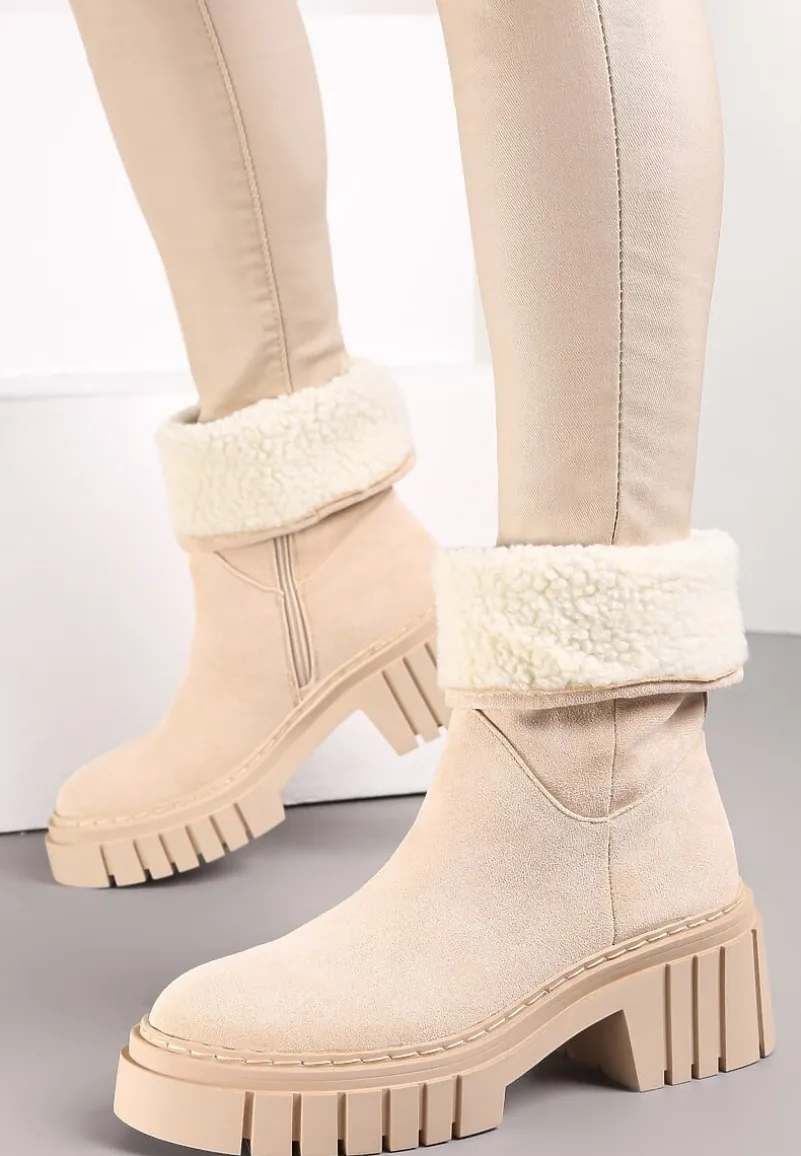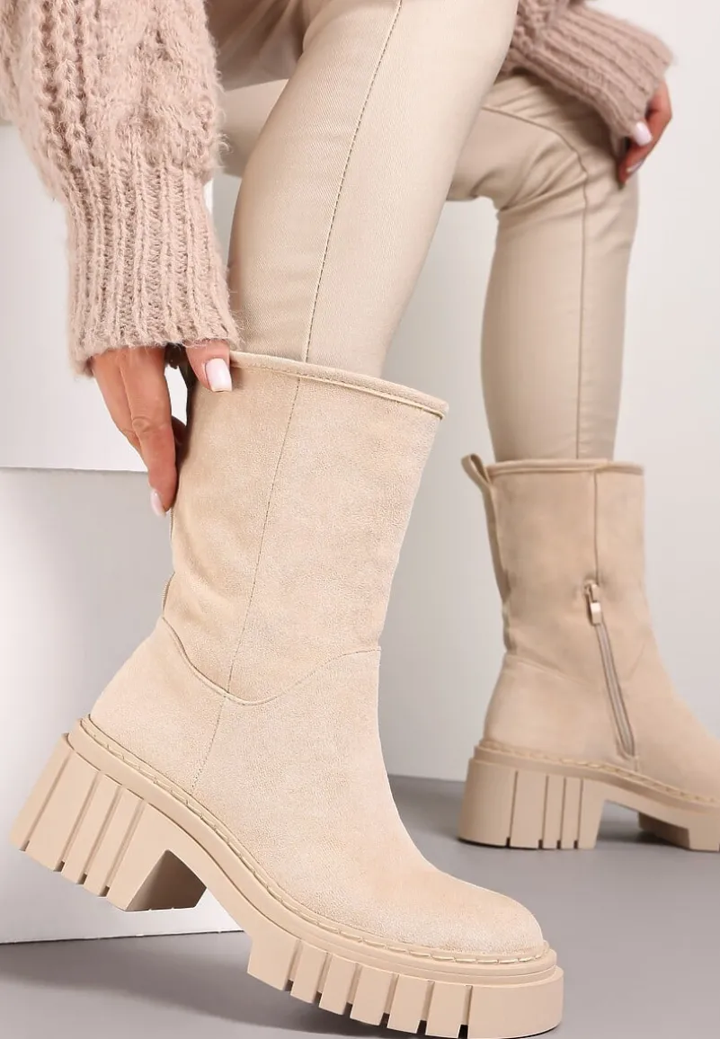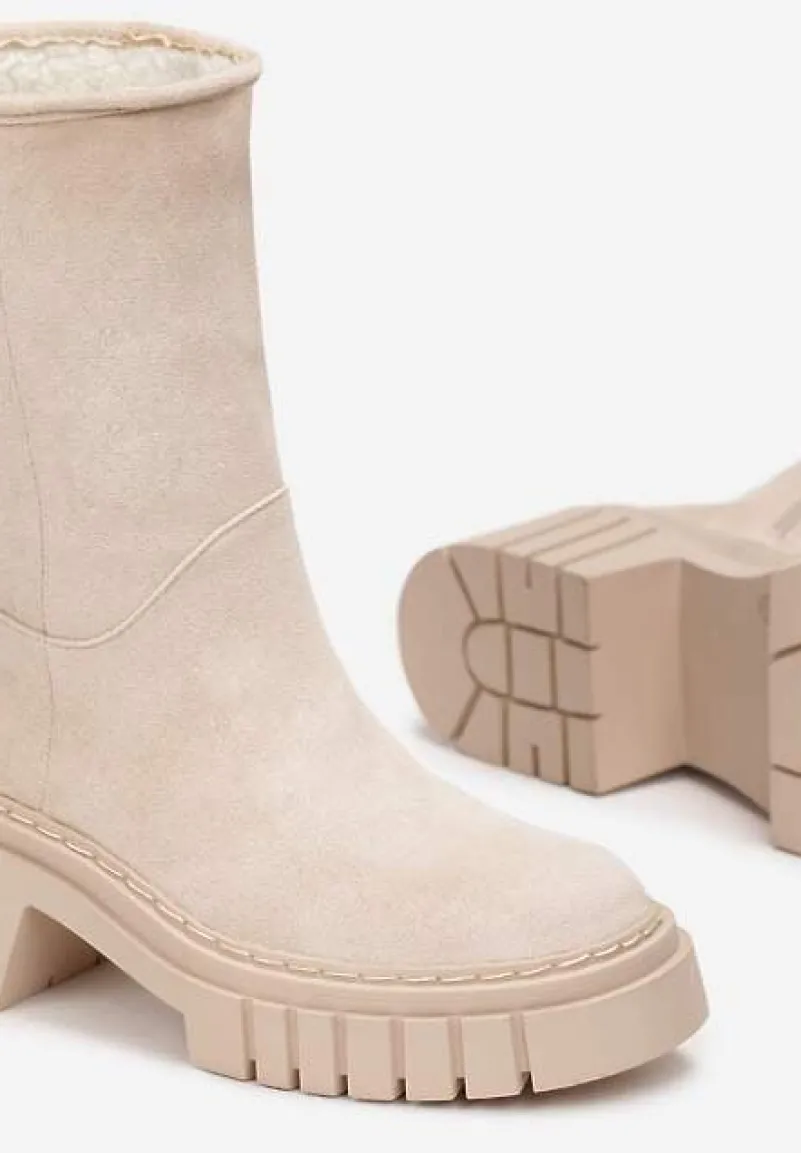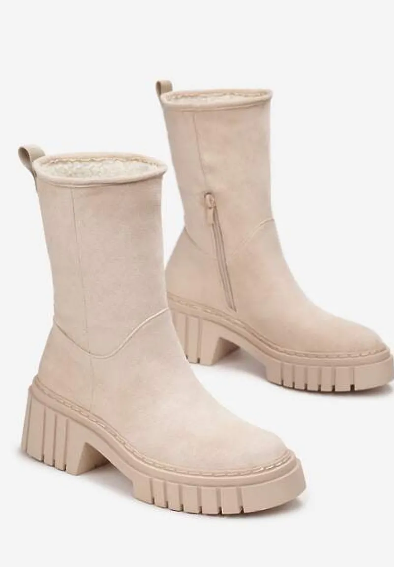 Botki Lymal wykonane z ekozamszu, z wysoką cholewką za kostkę. Zasuwane na zamek błyskawiczny od wewnętrznej strony. Osadzone na grubej podeszwie z wycięciami. Z tyłu tasiemka, która ułatwia zakładanie. Ocieplane od środka kocem obuwniczym.