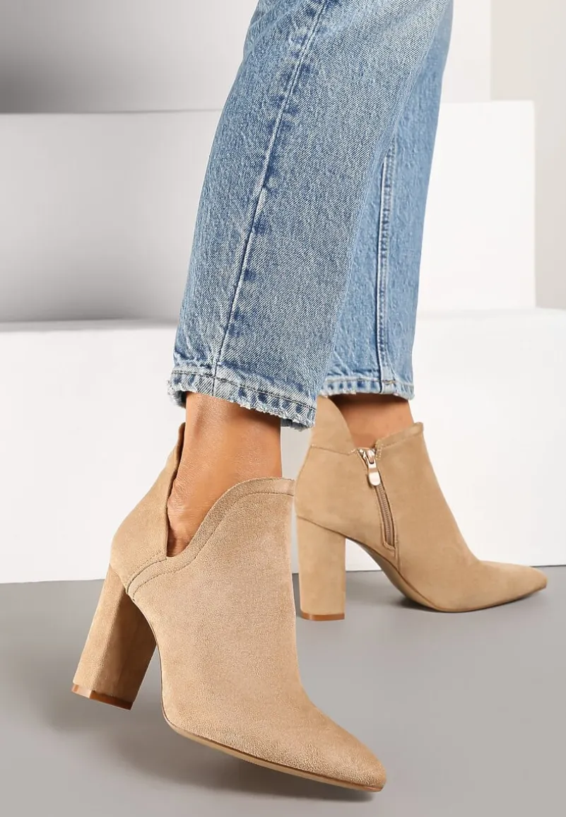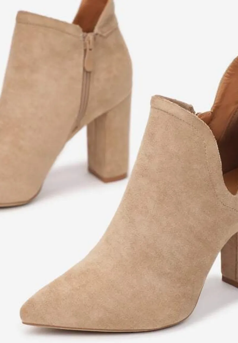 Botki Pronene wsuwane, z wycięciem po zewnętrznej stronie cholewki. Na wysokim słupku, ze smukłym noskiem w szpic. Zapinane wzdłuż wewnętrznej strony cholewki na zamek błyskawiczny. Wykonane z ekozamszu w jednolitym kolorze. Model nieocieplany. Stworzy superzgrany set ze wzorzystymi elementami garderoby. To fason w sam raz dla miłośniczek modnych detali.