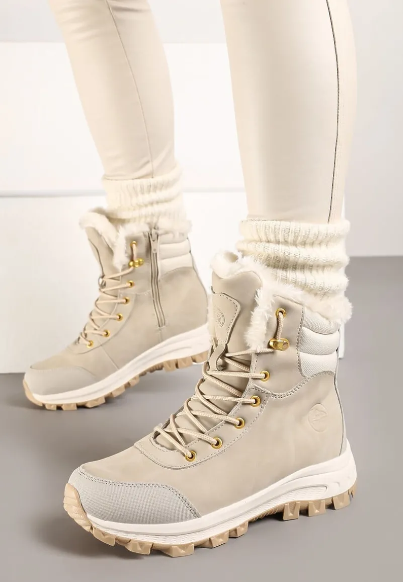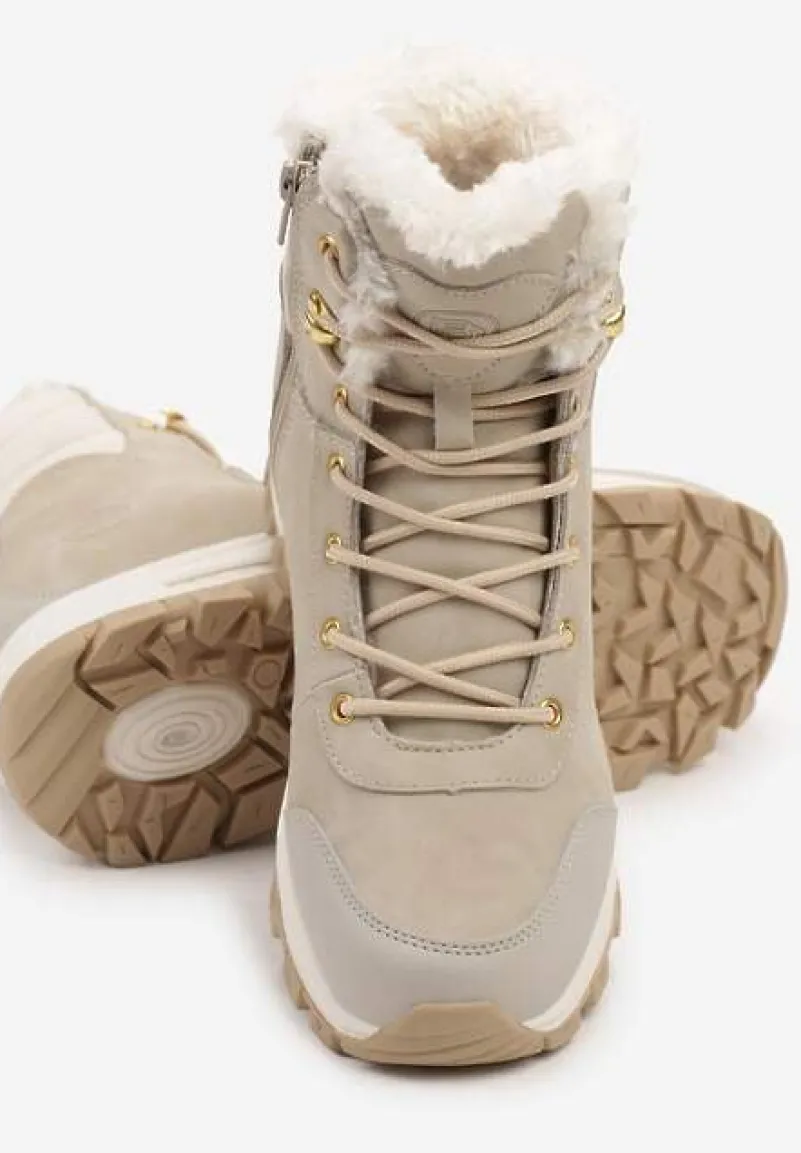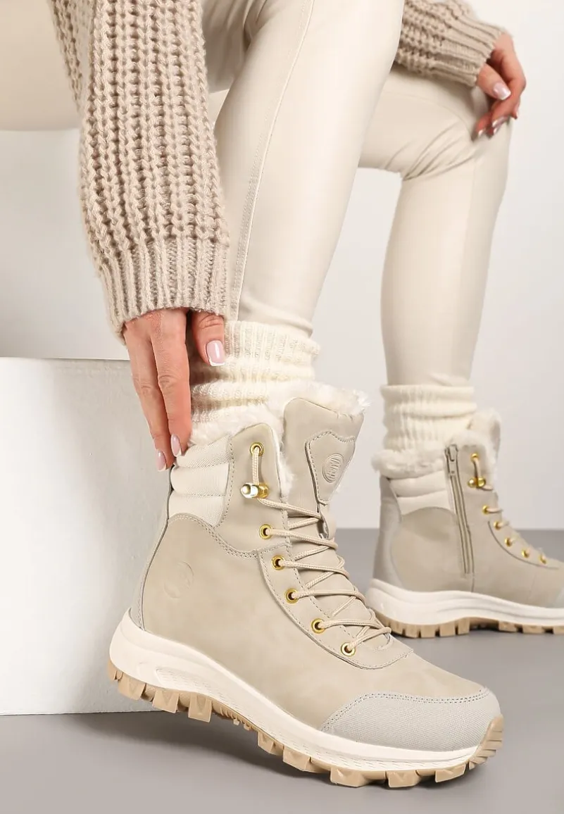 Botki Trekkingowe Labrinna to must-have dla każdej modnej poszukiwaczki przygód! Zaprojektowane z myślą o zimowych eskapadach, posiadają płaską podeszwę, która doskonale izoluje od zimna. Solidne sznurowanie pozwoli idealnie dopasować botki do Twojej stopy, a zapięcie na suwak ułatwi zakładanie. Botki Labrinna sprawdzą się doskonale na wiele okazji – zestaw je z jeansami i oversize’owym swetrem na nieformalne wyjścia lub połącz z elegancką plisowaną spódnicą i golfem, tworząc modny kontrast na formalne okazje. Kup mniejszy rozmiar.