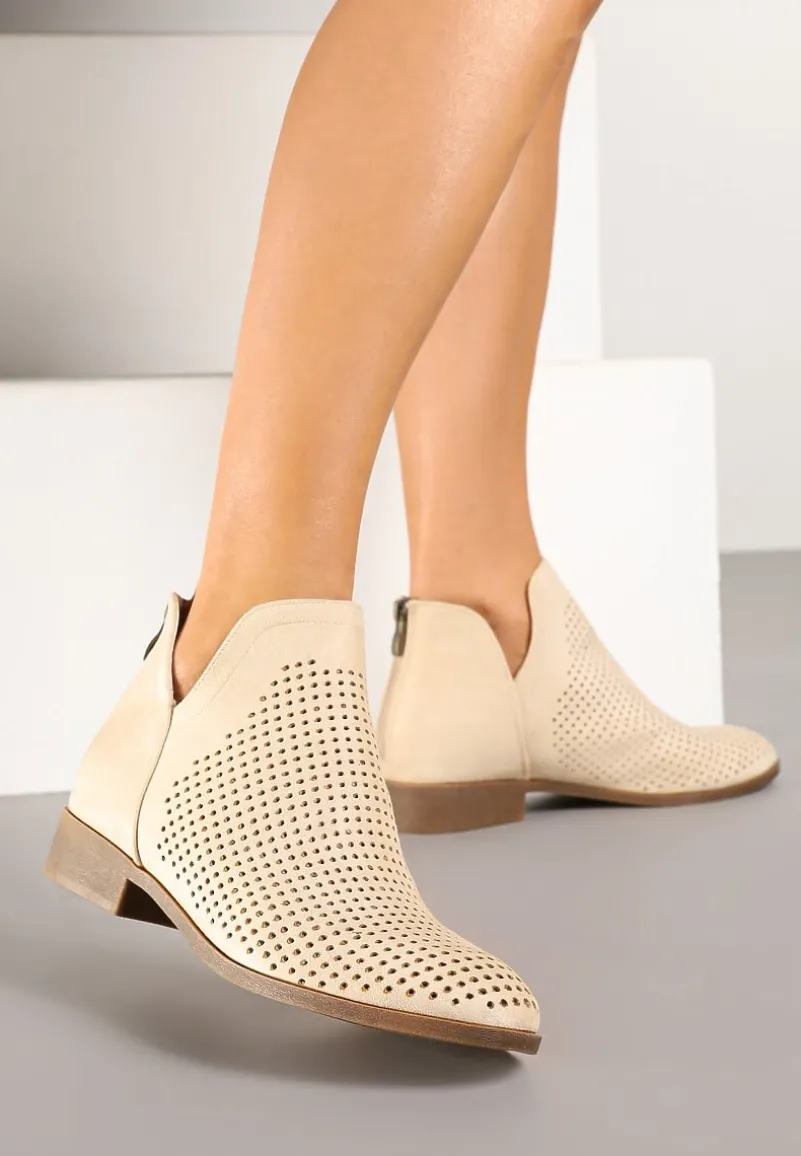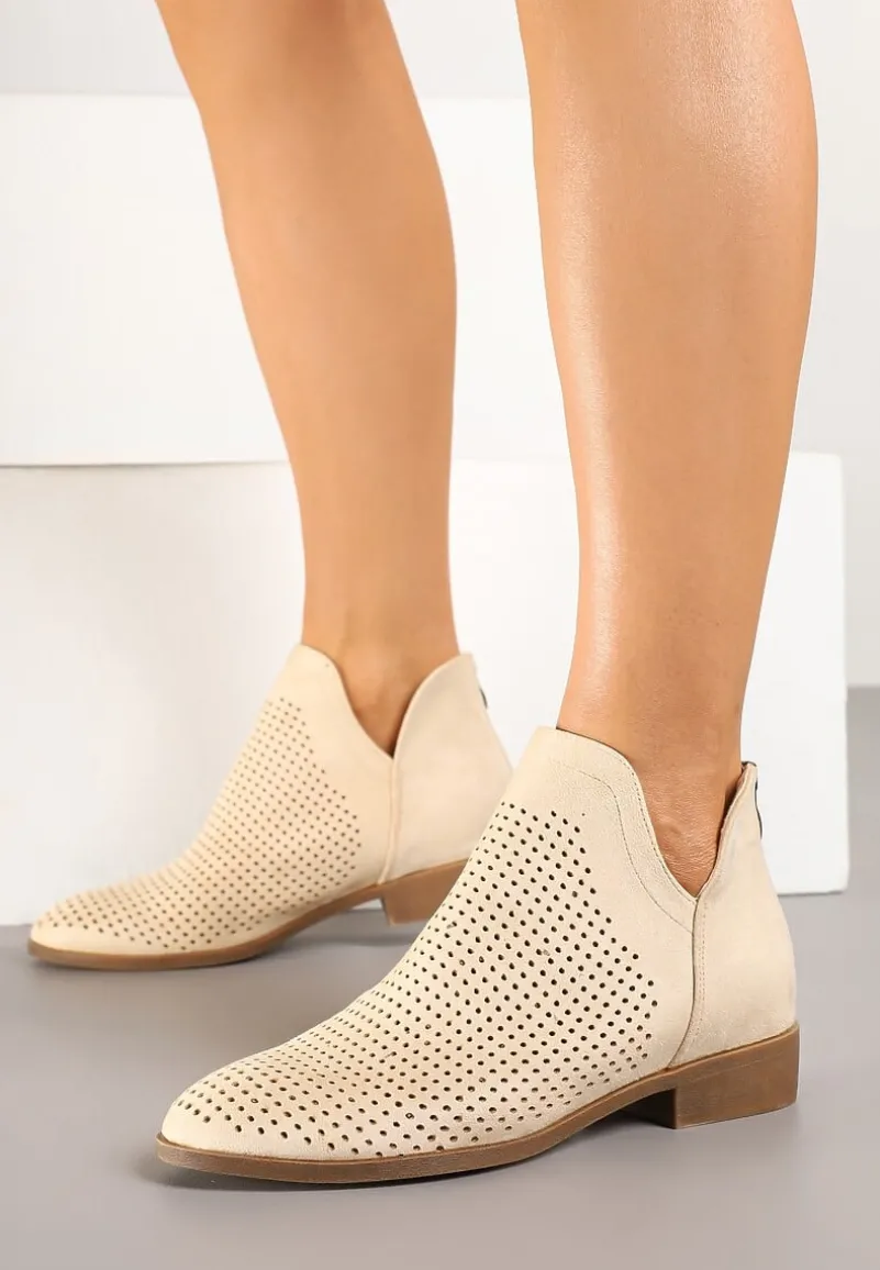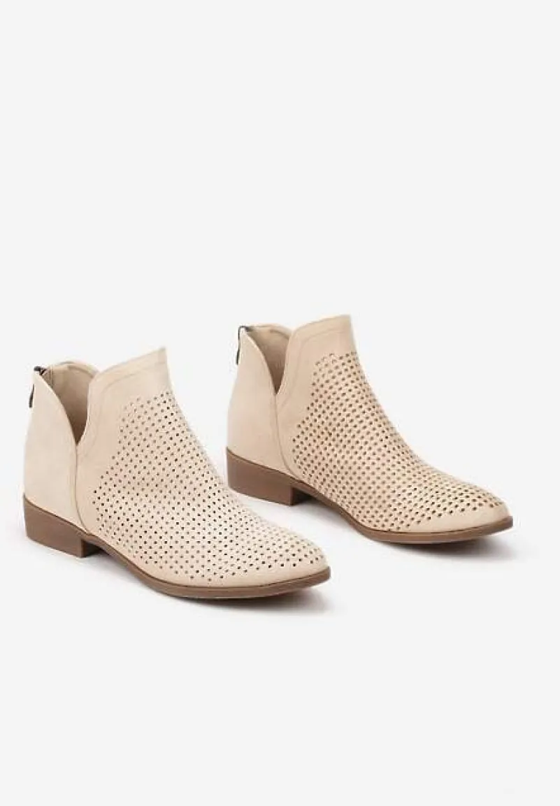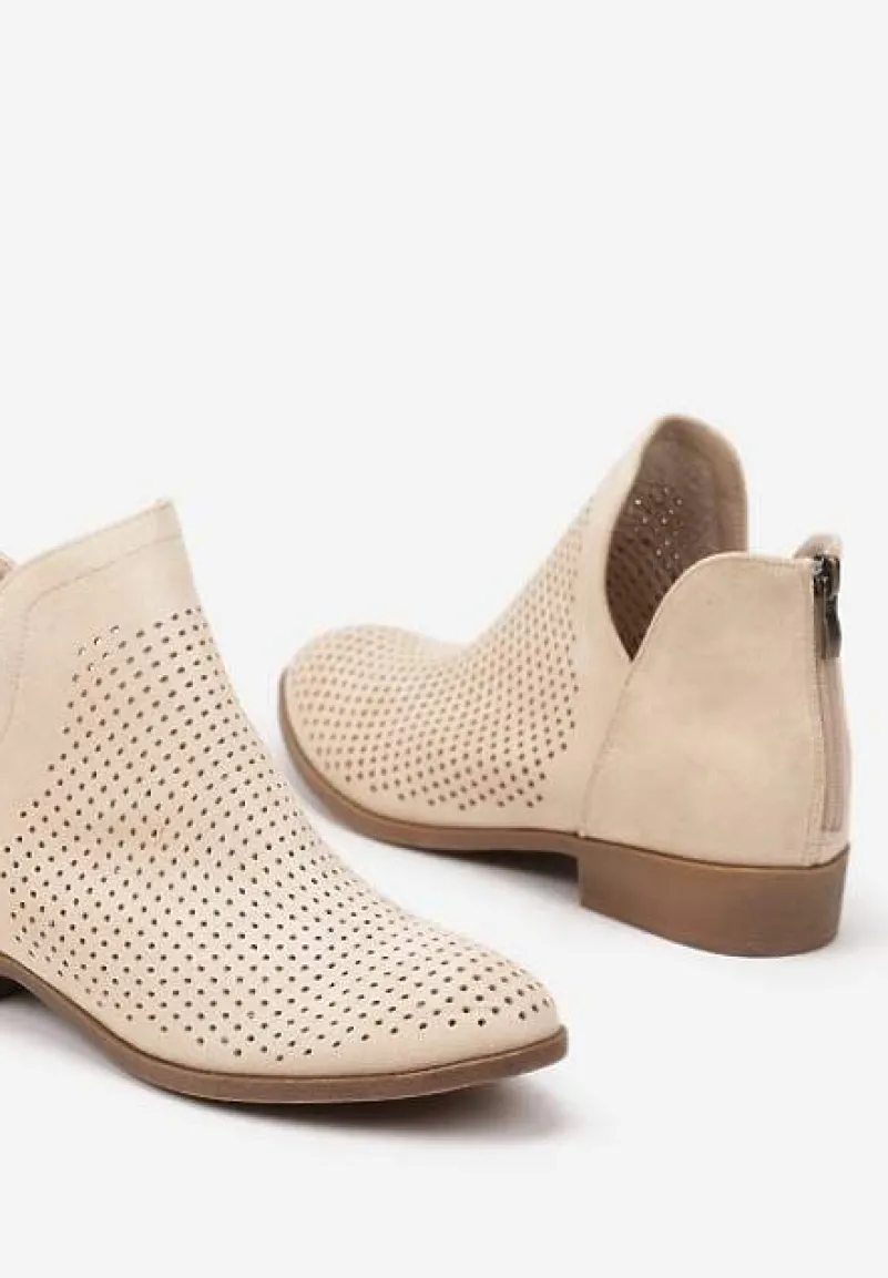 Beżowe Botki Vices na Płaskiej Podeszwie Ozdobione Wycięciem Felirwen