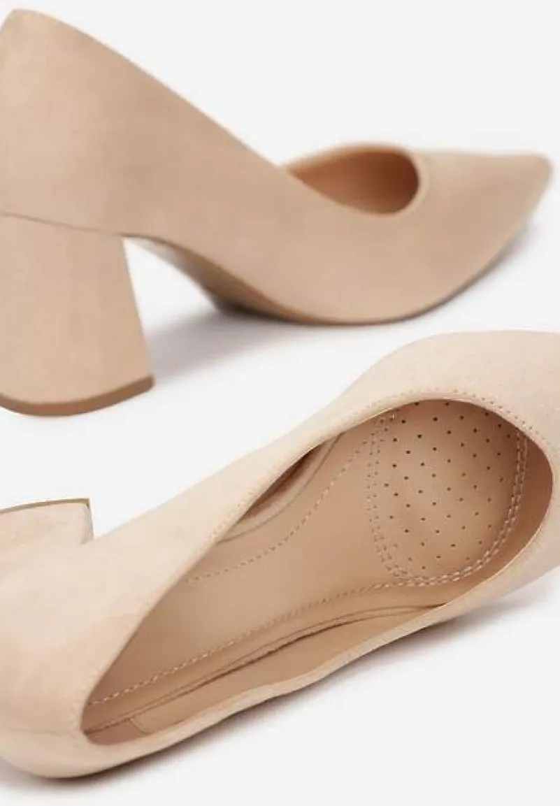Czółenka Aqiamare z klasyczną cholewką kończącą się przed kostką. Z wysmuklonym, szpiczastym noskiem oraz trójkątnym wcięciem u góry. Osadzone na oblekanym, stożkowym słupku. Wsuwane. Wykonane z ekozamszu. Wewnątrz znajduje się profilowana, miękka wkładka – Soft Step System, który zwiększa wsparcie stopy. To eleganckie czółenka w nowoczesnym wydaniu!