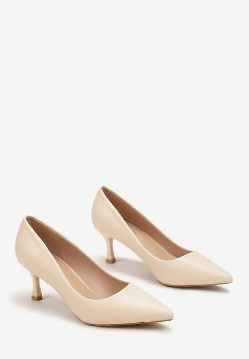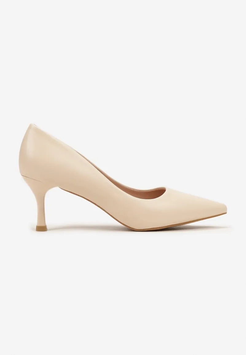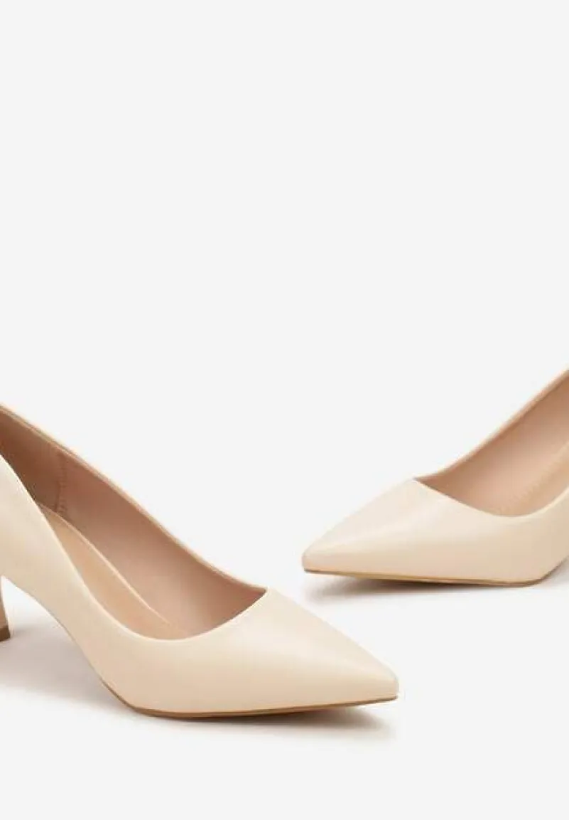 Beżowe Czółenka na Niskiej Szpilce ze Szpiczastym Noskiem Unit