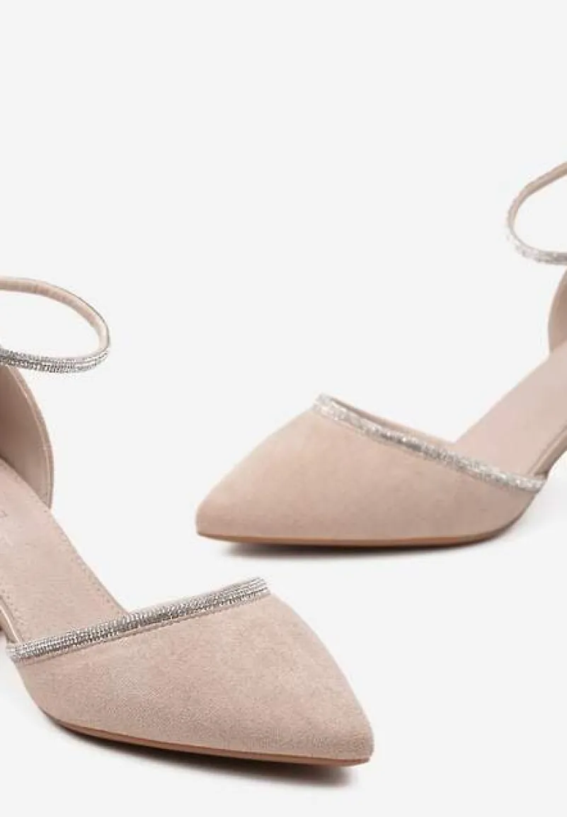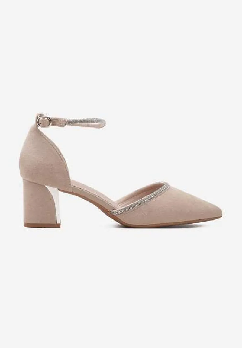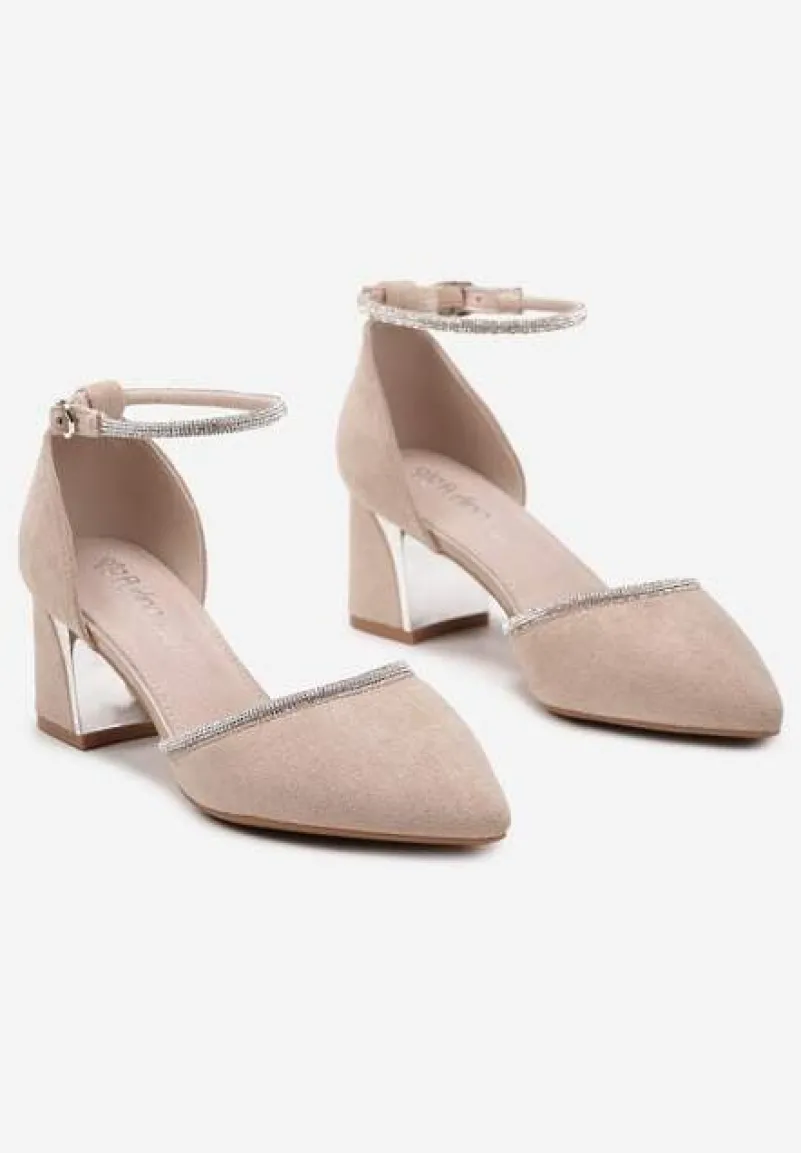 Czółenka Radinafe na słupku to wybór nowoczesnej kobiety ceniącej elegancję z odrobiną blasku. Nosek buta w szpic i delikatne metaliczne zdobienia dodają szyku każdej stylizacji. Zapięcie w formie sprzączki to detal, który łączy szyk z subtelną, modną nutą. Idealne na spotkania biznesowe w połączeniu z ołówkową spódnicą i jedwabną bluzką, jak i na wieczorne wyjście do teatru z elegancką sukienką i perłowymi dodatkami.