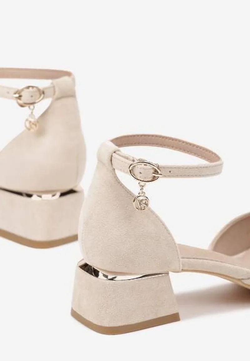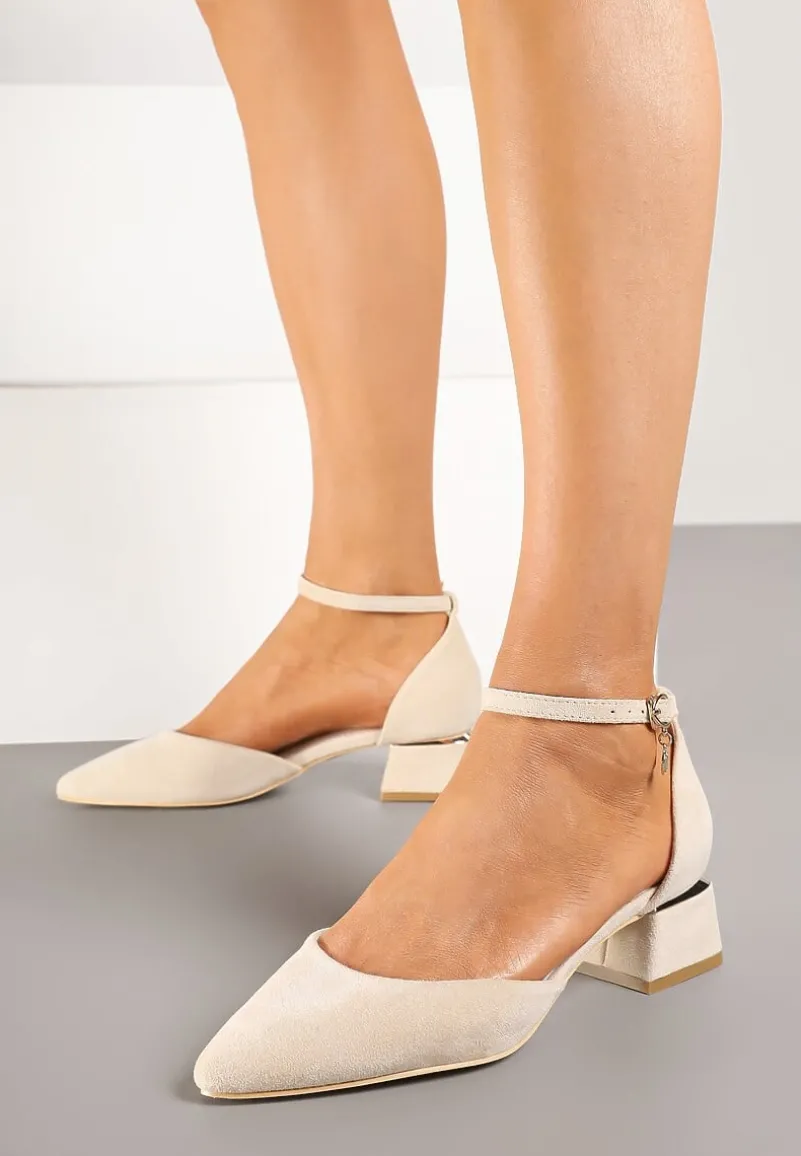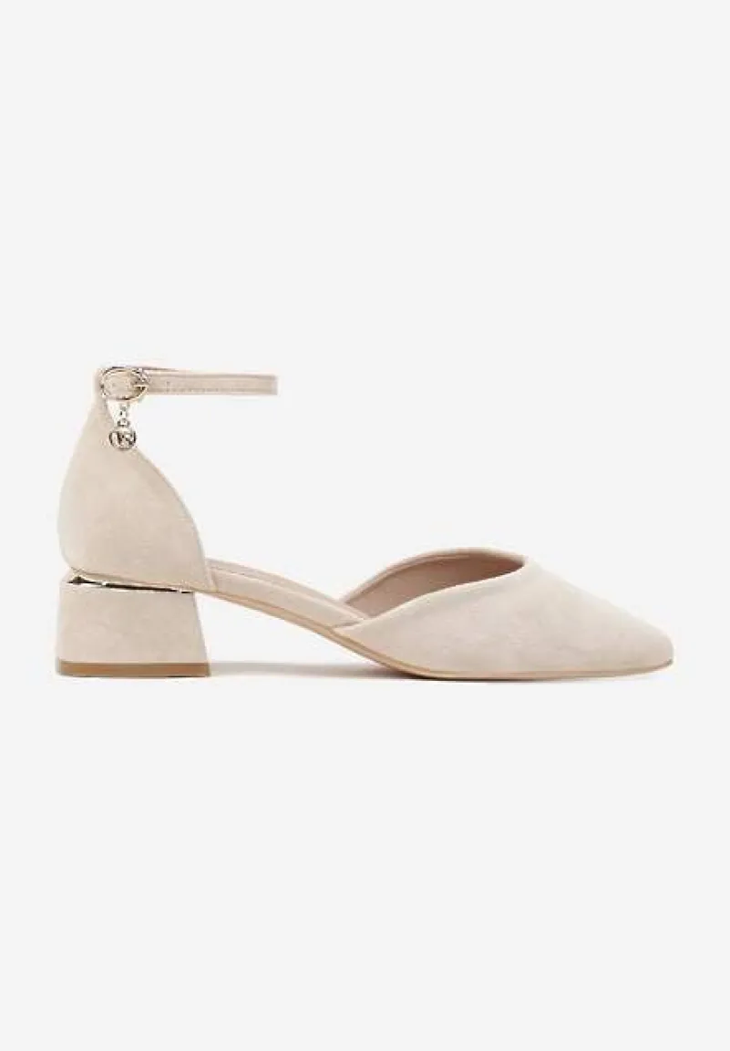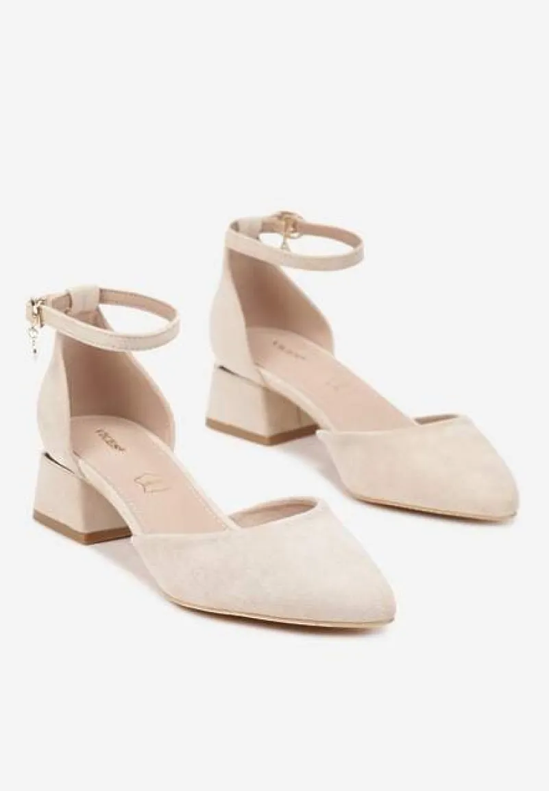 Beżowe Czółenka Vices na Słupku z Wkładką ze Skóry Naturalnej i Paskiem Wokół Kostki Zolori