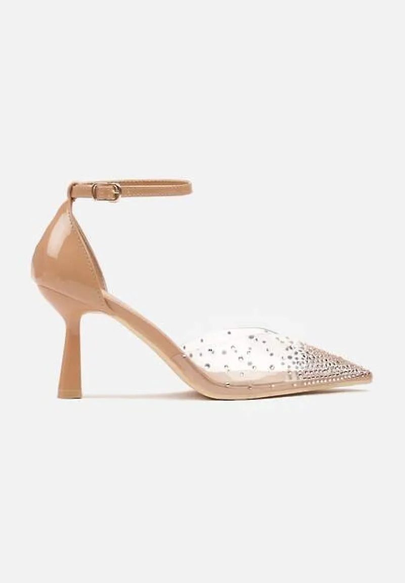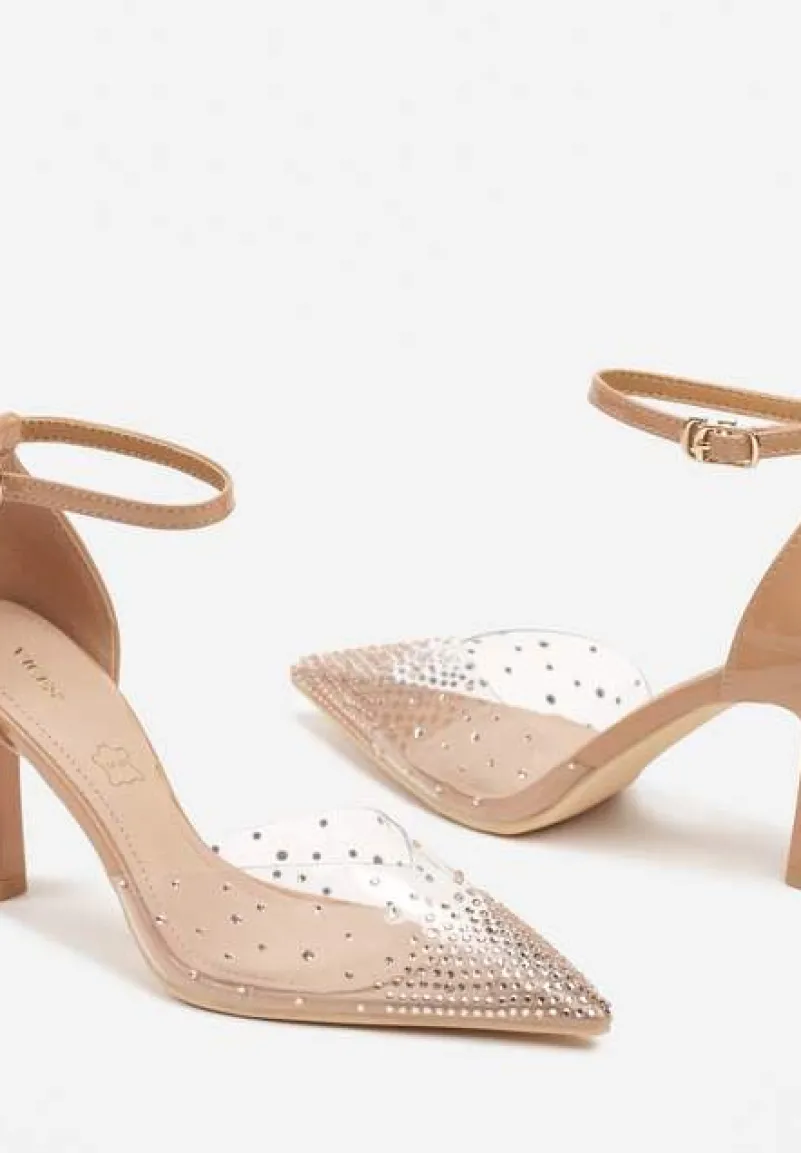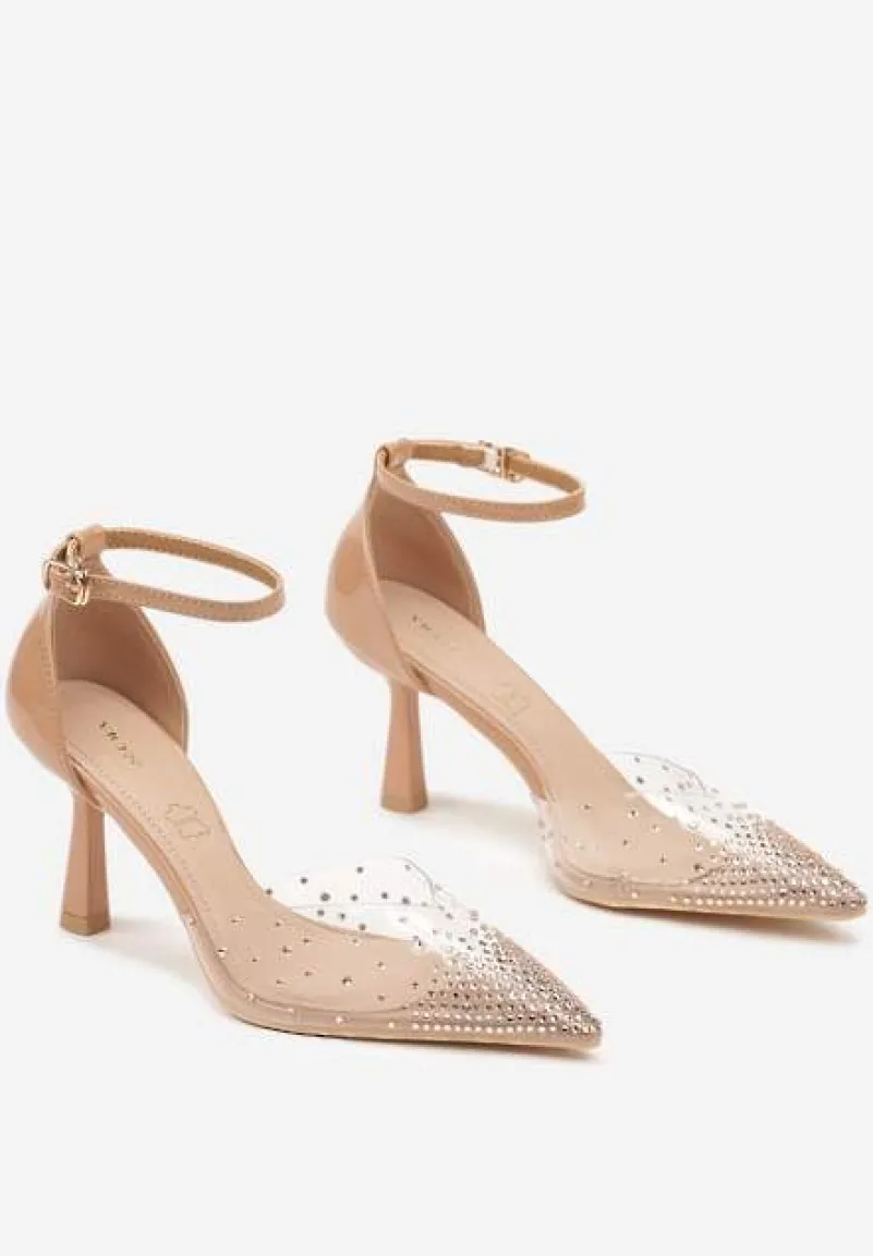 Beżowe Czółenka Vices na Szpilce z Wkładką ze Skóry Naturalnej Ozdobione Cyrkoniami Lilarin