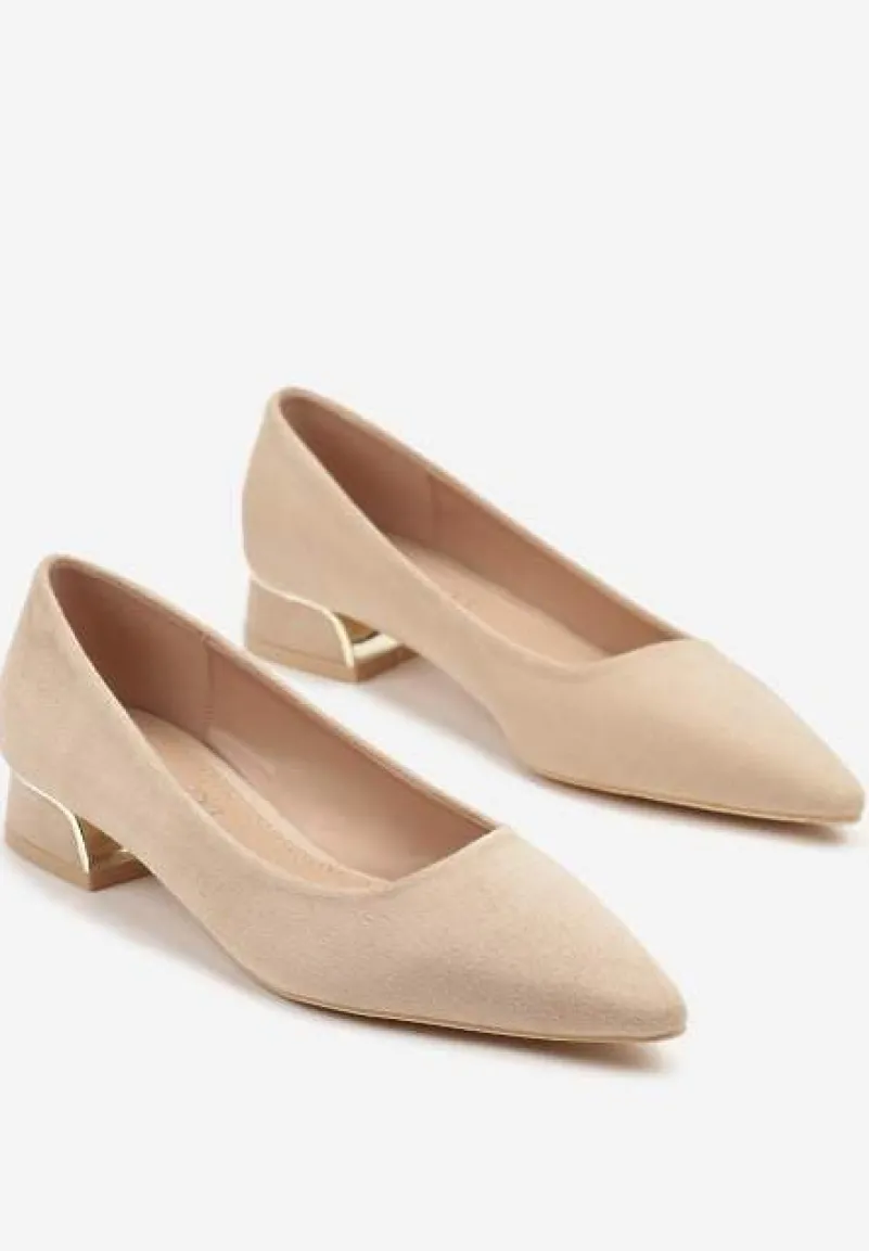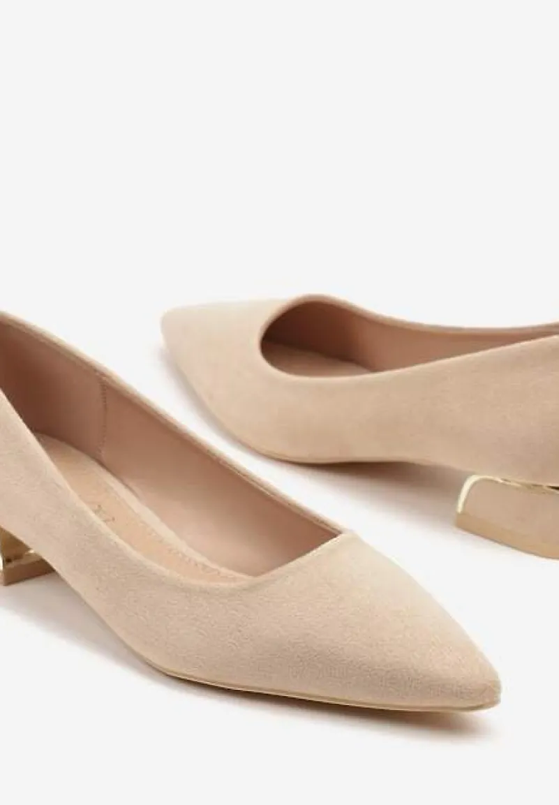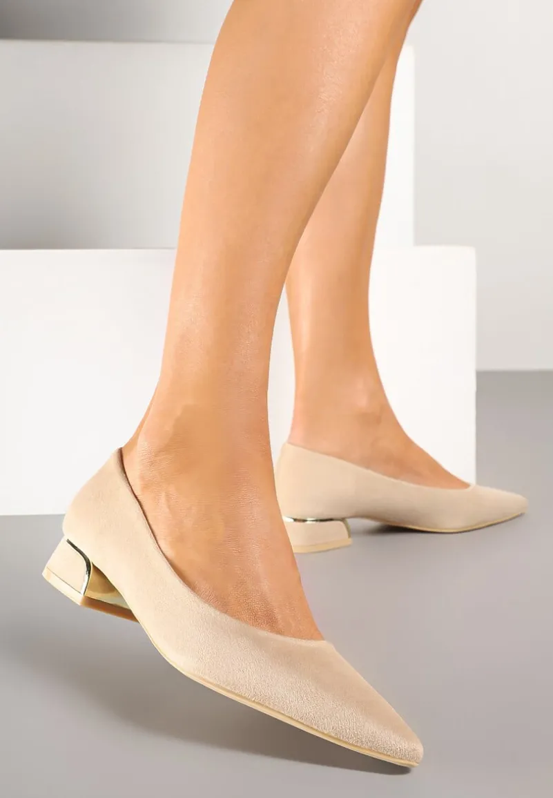 Beżowe Czółenka Vices z Wkładką ze Skóry Naturalnej i Metaliczną Aplikacją Edilania