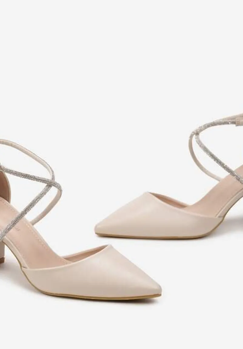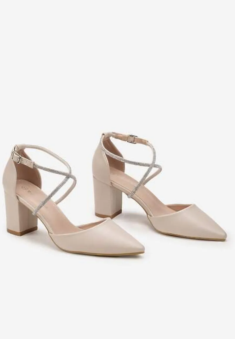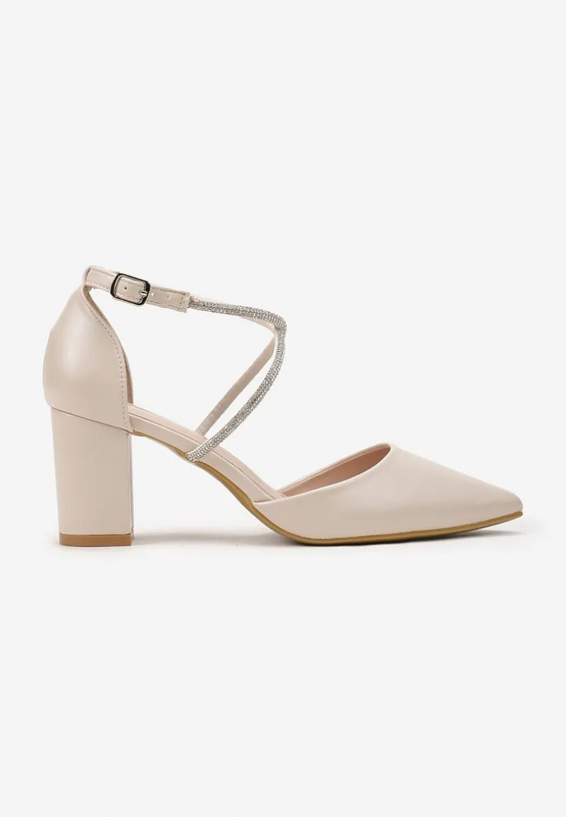 Beżowe Czółenka z Paseczkami z Cyrkoniami na Niewysokim Słupku Rianlle
