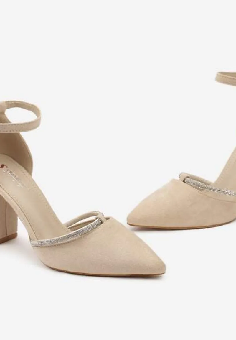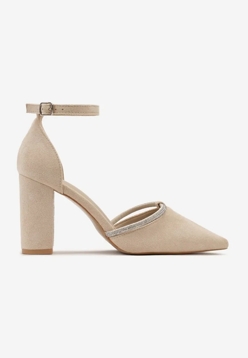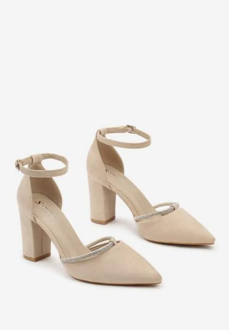 Beżowe Czółenka ze Sprzączką wokół Kostki na Słupku z Ekozamszu Nelirase