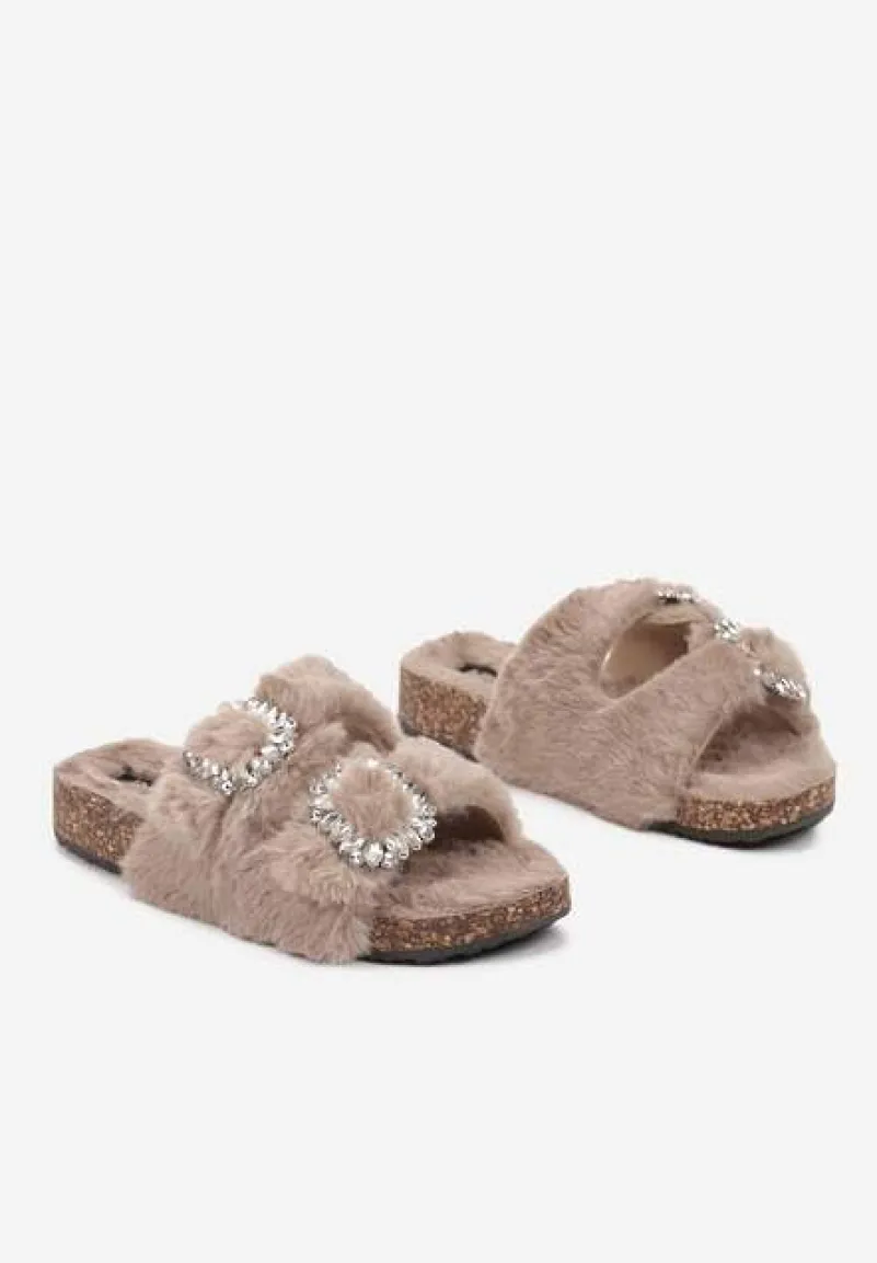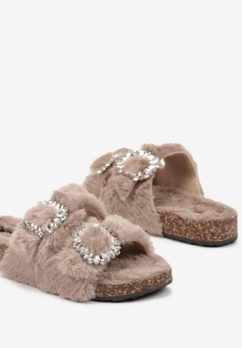 W kapciach Arvela z miękkiego futerka, które zapewnią ciepło Twoim stopom. Płaska podeszwa gwarantuje stabilność przy każdym kroku. Ozdobne klamry z regulacją, połączone z subtelnymi cyrkoniami, dodają radosnego blasku i elegancji Twoim domowym stylizacjom. Zarówno przy porannej kawie w zaciszu ogrodu, jak i na popołudniowym relaksie, kapcie te będą idealnym wyborem, dodającym szczyptę szyku do każdej casualowej piżamy czy kimona.