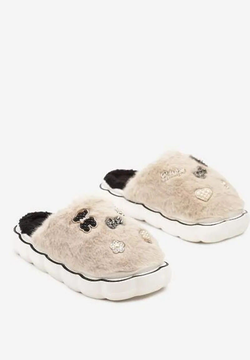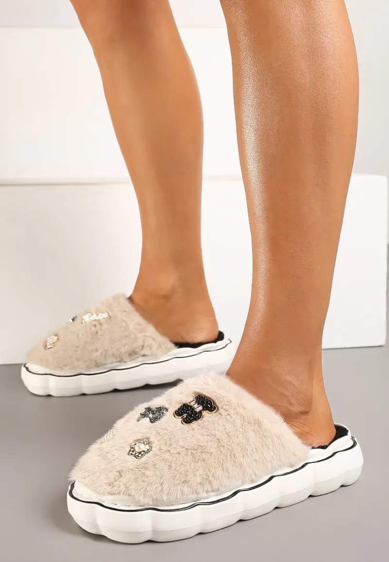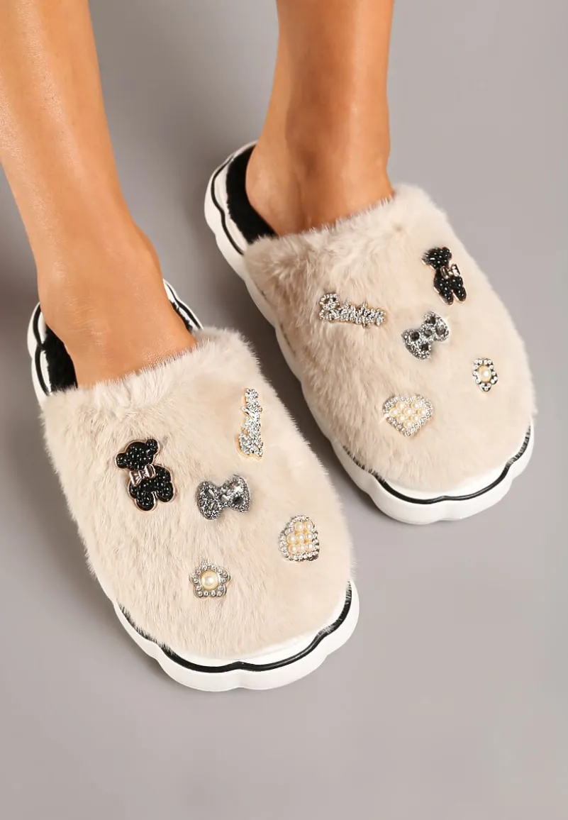 Przed Tobą Kapcie Emmilaine, które łączą w sobie płaskie podeszwy z ekstrawagancją metalicznych ozdób. Nosek nadaje im klasycznego szyku, a brak zbędnych zapięć gwarantuje łatwość w zakładaniu. Uniwersalność tych kapci sprawia, że założysz je zarówno podczas domowego relaksu, jak i na casualowe spotkanie ze znajomymi. W połączeniu z joggersami i luźnym swetrem stworzą niezobowiązujący, a zarazem stylowy zestaw.